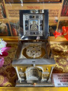 Помолившись за Божественной литургией, которая была совершена в храме Рождества Иоанна Предтечи на Малышевой горе, паломники посетили Староладожский Никольский мужской монастырь XIII века, где хранятся ковчег с частицей мощей свт. Николая Чудотворца, частицы мощей святых угодников Божиих, особо чтимая икона Божией Матери «Черниговская-Гефсиманская».