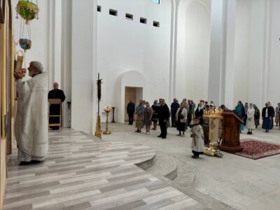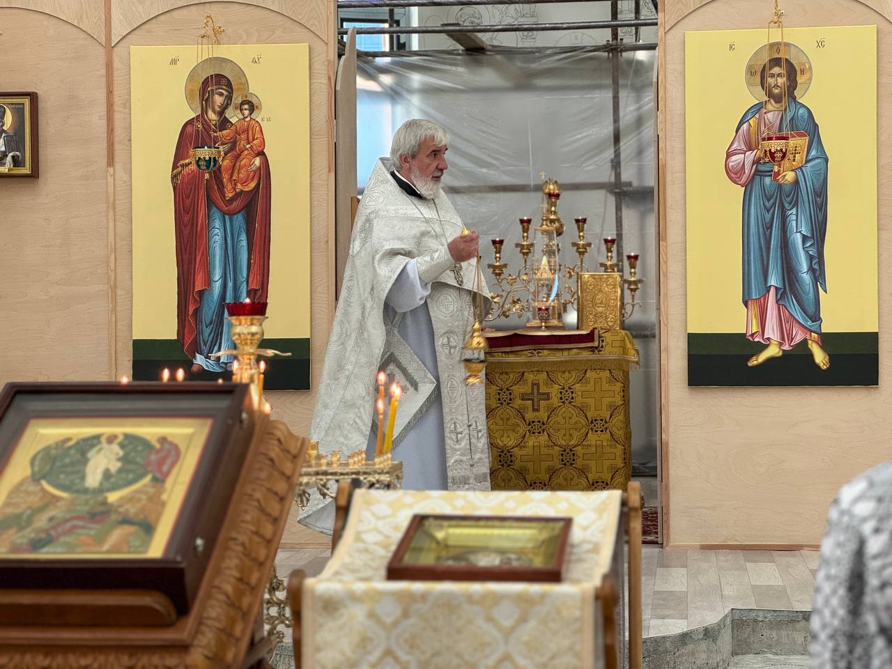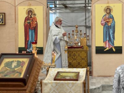 25 августа 2024 года, в Неделю 9-ю по Пятидесятнице, Божественную литургию в строящемся храме Всемилостивого Спаса совершил настоятель храма протоиерей Михаил Подолей.