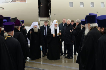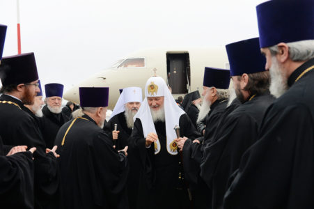 В аэропорту Пулково Предстоятеля Русской Православной Церкви встречали: управляющий делами Московской Патриархии митрополии Санкт-Петербургский и Ладожский Варсонофий; полномочный представитель Президента РФ в Северо-Западном федеральном округе Н.Н. Цуканов; губернатор Санкт-Петербурга Г.С. Полтавченко; архиереи Санкт-Петербургской митрополии : архиепископ Петергофский Амвросий, епископ Царскосельский Маркелл, епископ Тихвинский и Лодейнопольский Мстислав, епископ Гатчинский и Лужский Митрофан, духовенство митрополии.