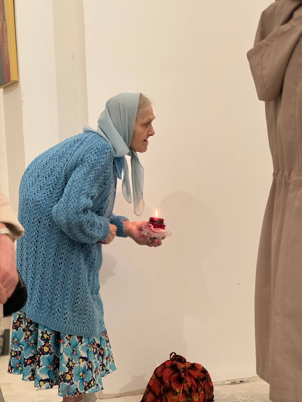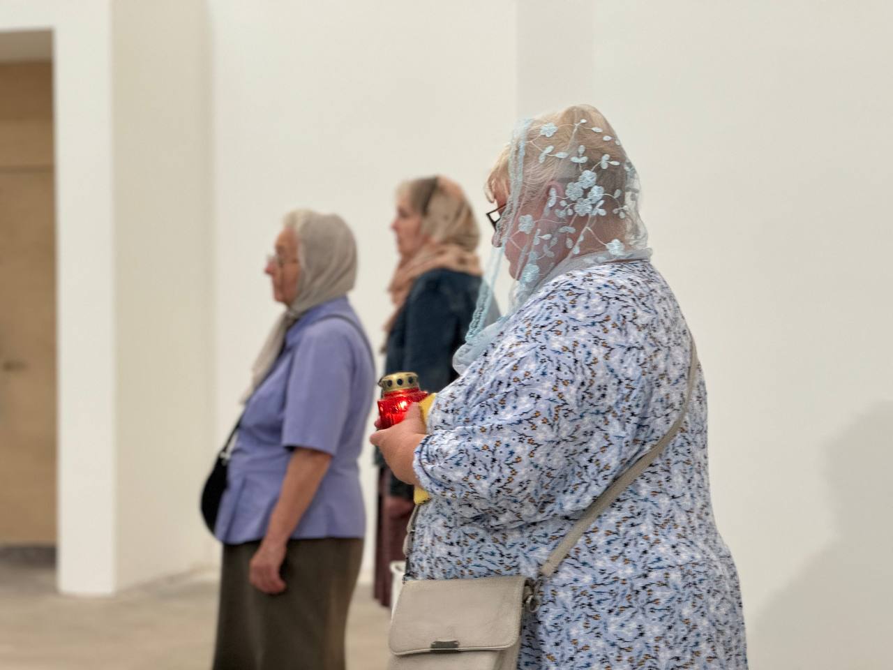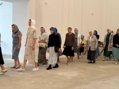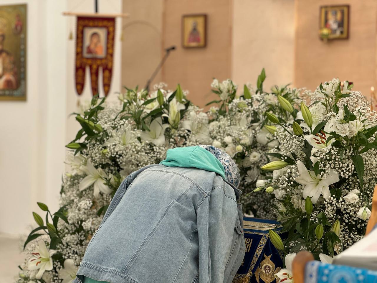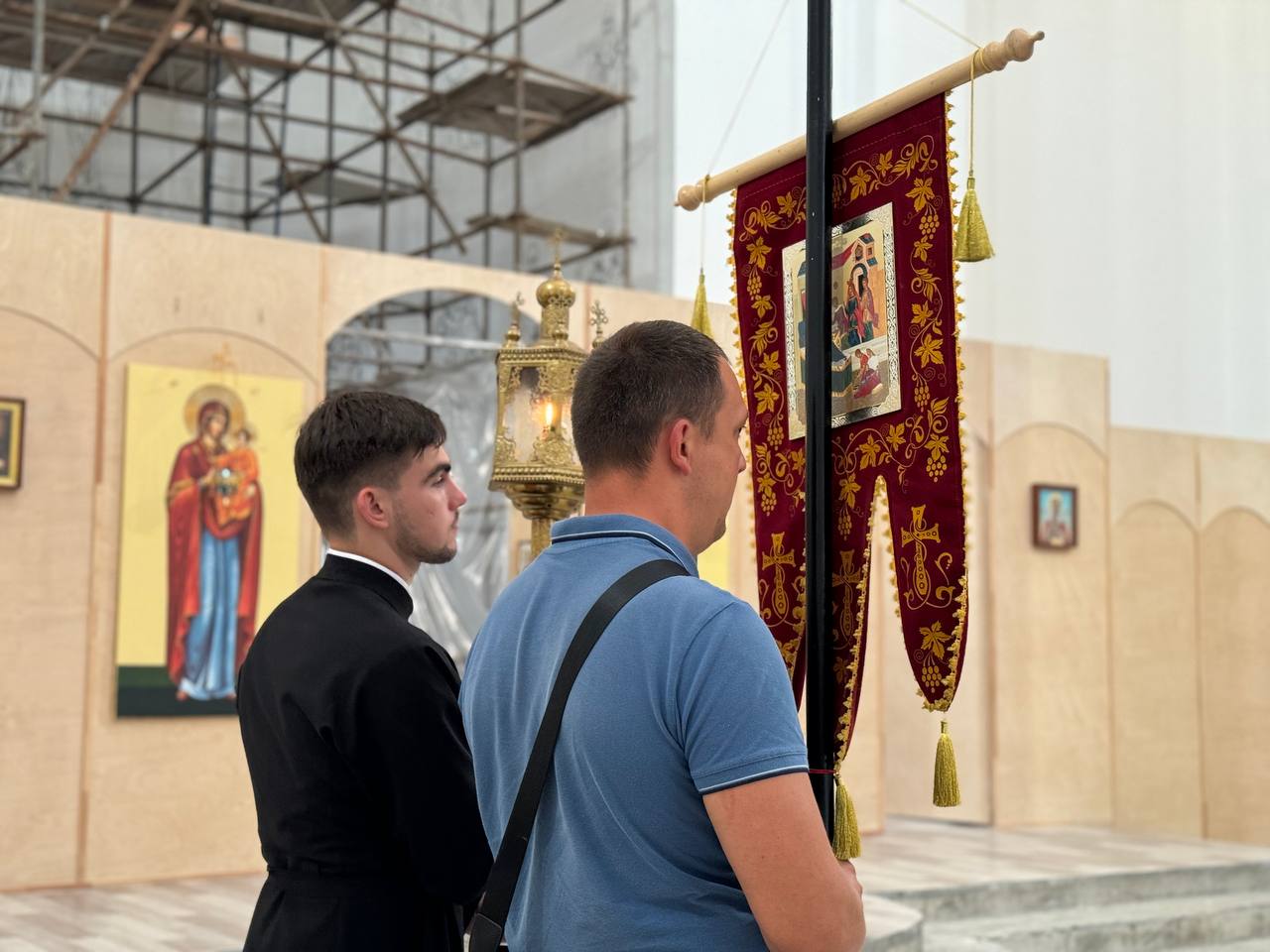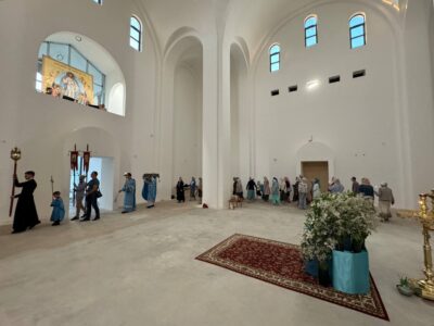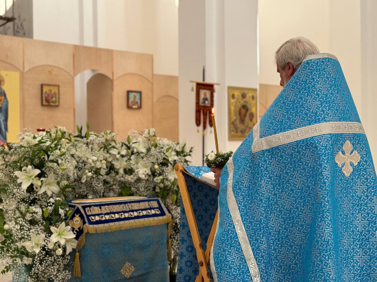Был совершен крестный ход по периметру внутри храма с плащаницей Богородицы.