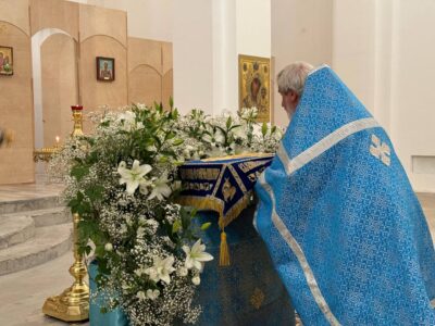 29 августа 2024 года вечернее богослужение в строящемся храме Всемилостивого Спаса совершил настоятель храма протоиерей Михаил Подолей в сослужении диакона Эмануила Кричфалуший.