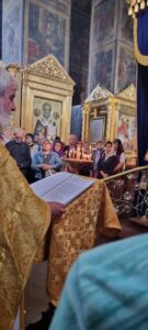 Паломники молились за Божественной литургией в Успенском соборе Тихвинского монастыря. После Литургии был совершен молебен перед чудотворной иконой Божией Матери и проведена экскурсия. Далее паломники посетили Антониево-Дымский мужской монастырь и поклонились мощам преподобного Антония Дымского.