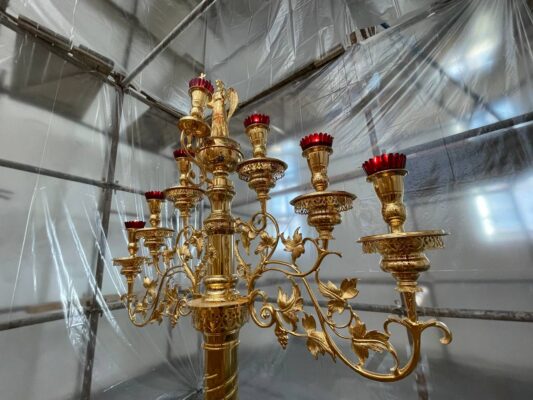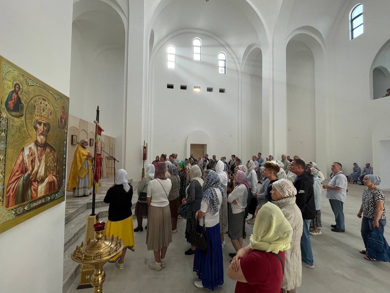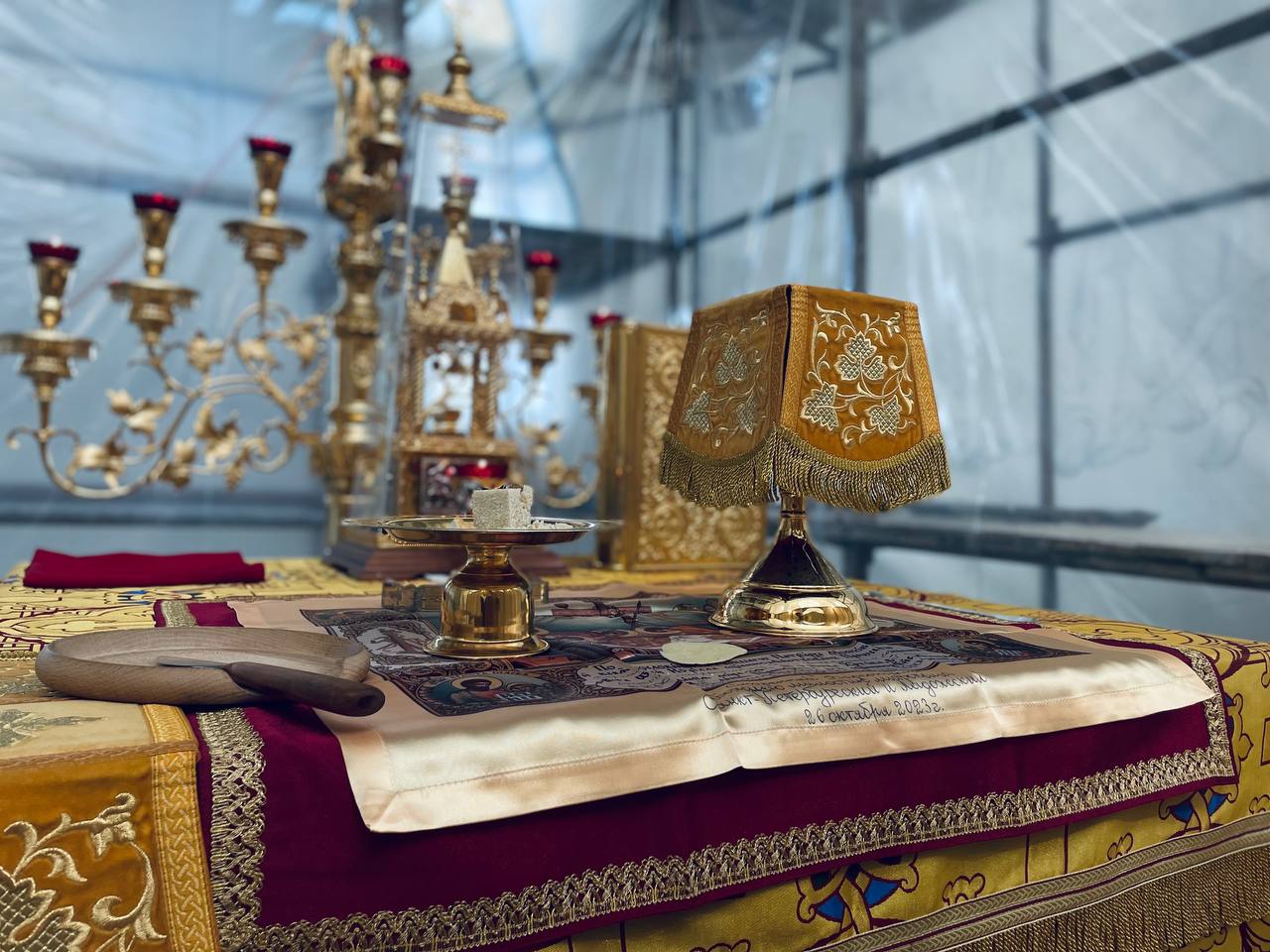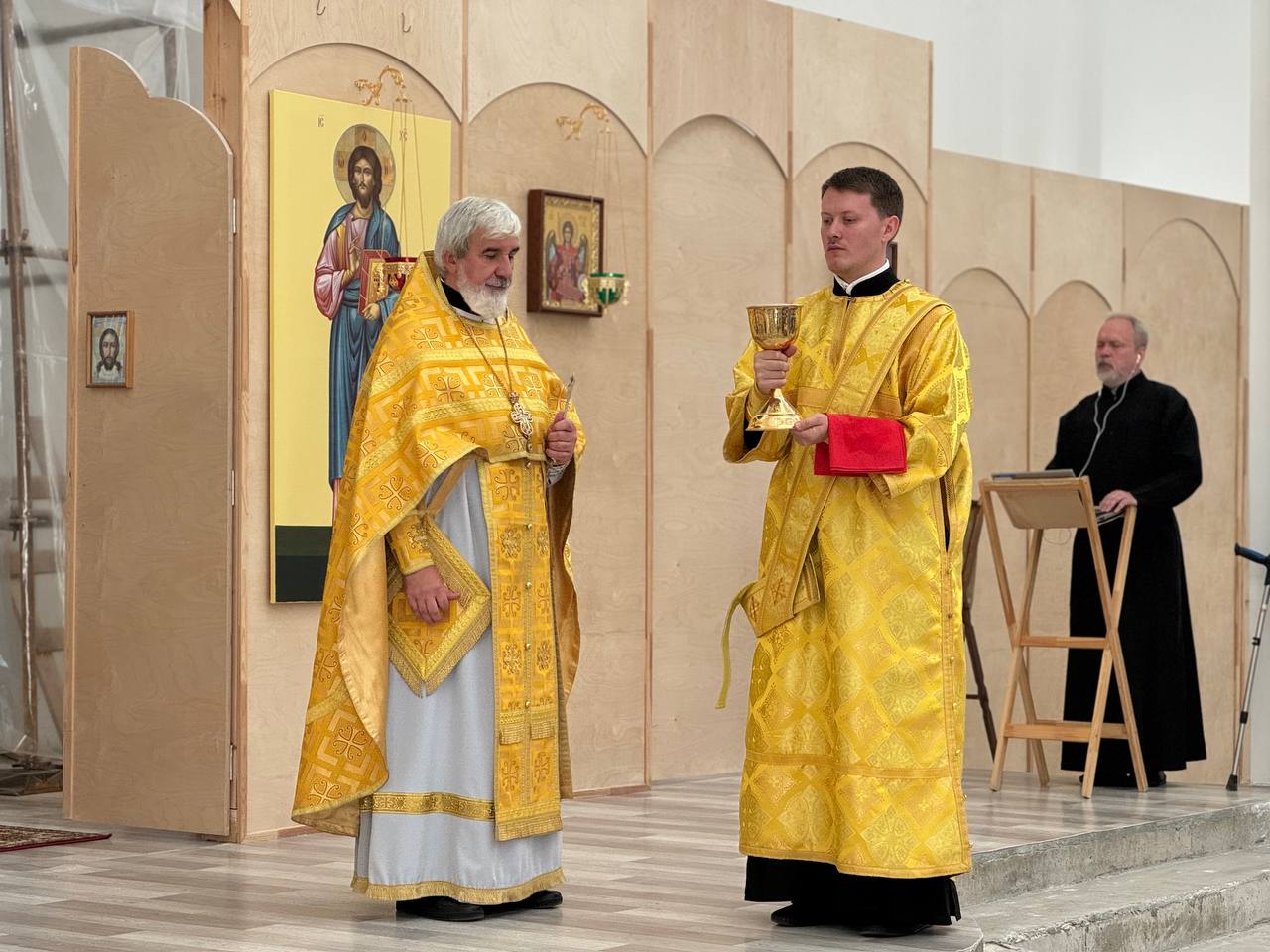 15 сентября 2024 года, в Неделю 12-ю по Пятидесятнице, Божественную литургию в строящемся храме Всемилостивого Спаса совершил настоятель храма протоиерей Михаил Подолей в сослужении клира.