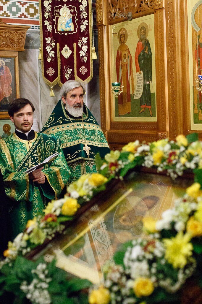 Его Высокопреосвященству сослужили секретарь епархиального управления протоиерей Сергий Куксевич, благочинный Красносельского округа и настоятель протоиерей Михаил Подолей с клиром и другие священнослужители.