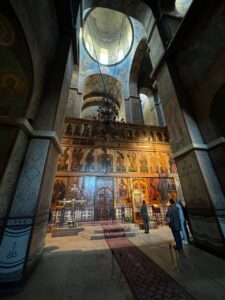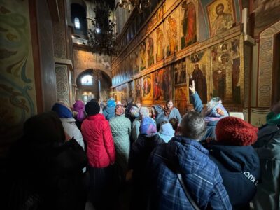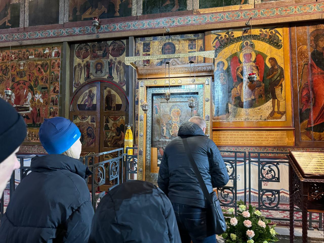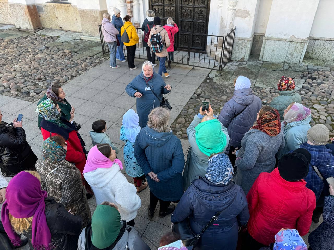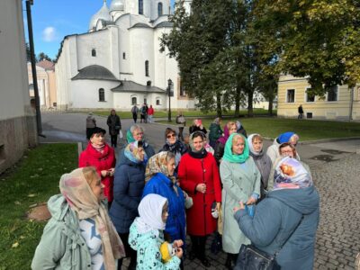 Паломники посетили главный православный храм Великого Новгорода — Собор Святой Софии, в котором хранятся мощи князей Новгородских, епископов и архиепископов. После Божественной литургии была проведена экскурсия по Собору и близлежащей территории.