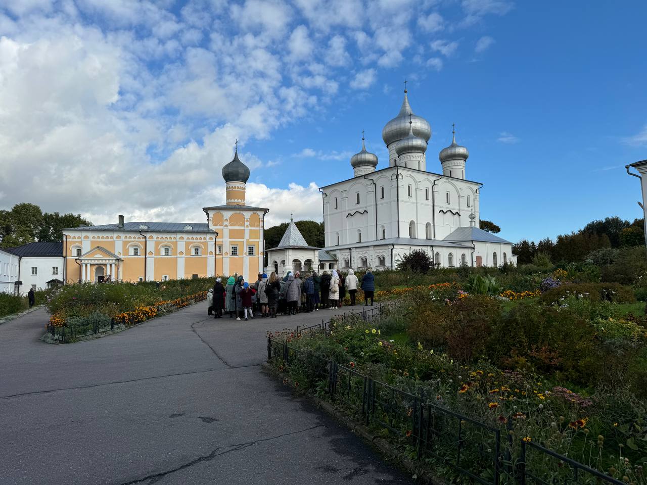 Далее паломники посетили Варлаамо-Хутынский женский монастырь. По приезде была совершена экскурсия по обители. В Спасо-Преображенском соборе, который расположен на территории монастыря, был совершен акафист перед мощами преподобного Варлаама Хутынского. Также паломники посетили Часовню, где подвизался святой.