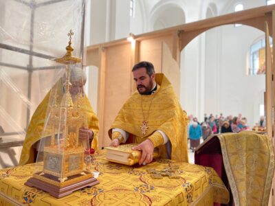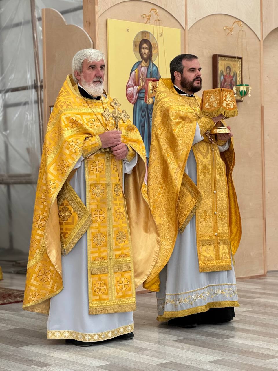 6 октября 2024 года, в Неделю 15-ю по Пятидесятнице, Божественную литургию в строящемся храме Всемилостивого Спаса совершил секретарь Черногорско-Приморской митрополии протоиерей Остоя Кнежевич в сослужении настоятеля храма протоиерея Михаила Подолея, диаконов Эмануила Кричфалуший и Владимира Аношина.