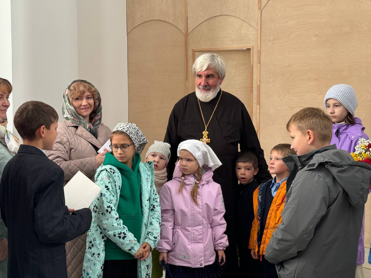 После богослужения воспитанники воскресной школы «София» поздравили настоятеля храма протоиерея Михаила Подолея с Днём учителя.