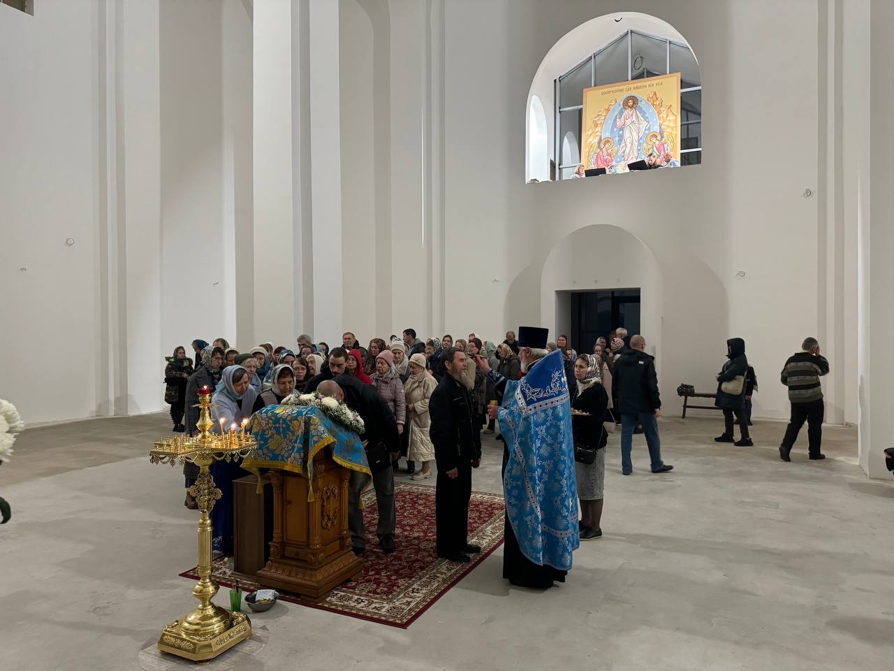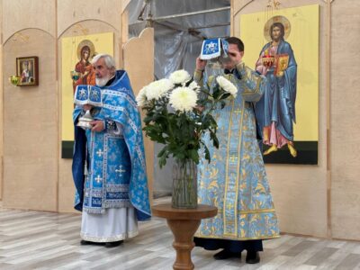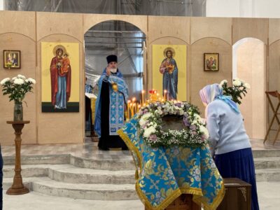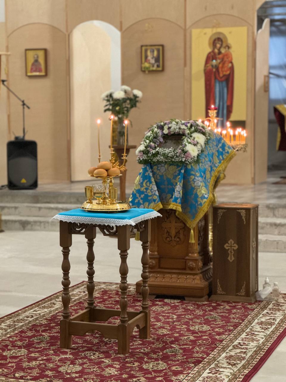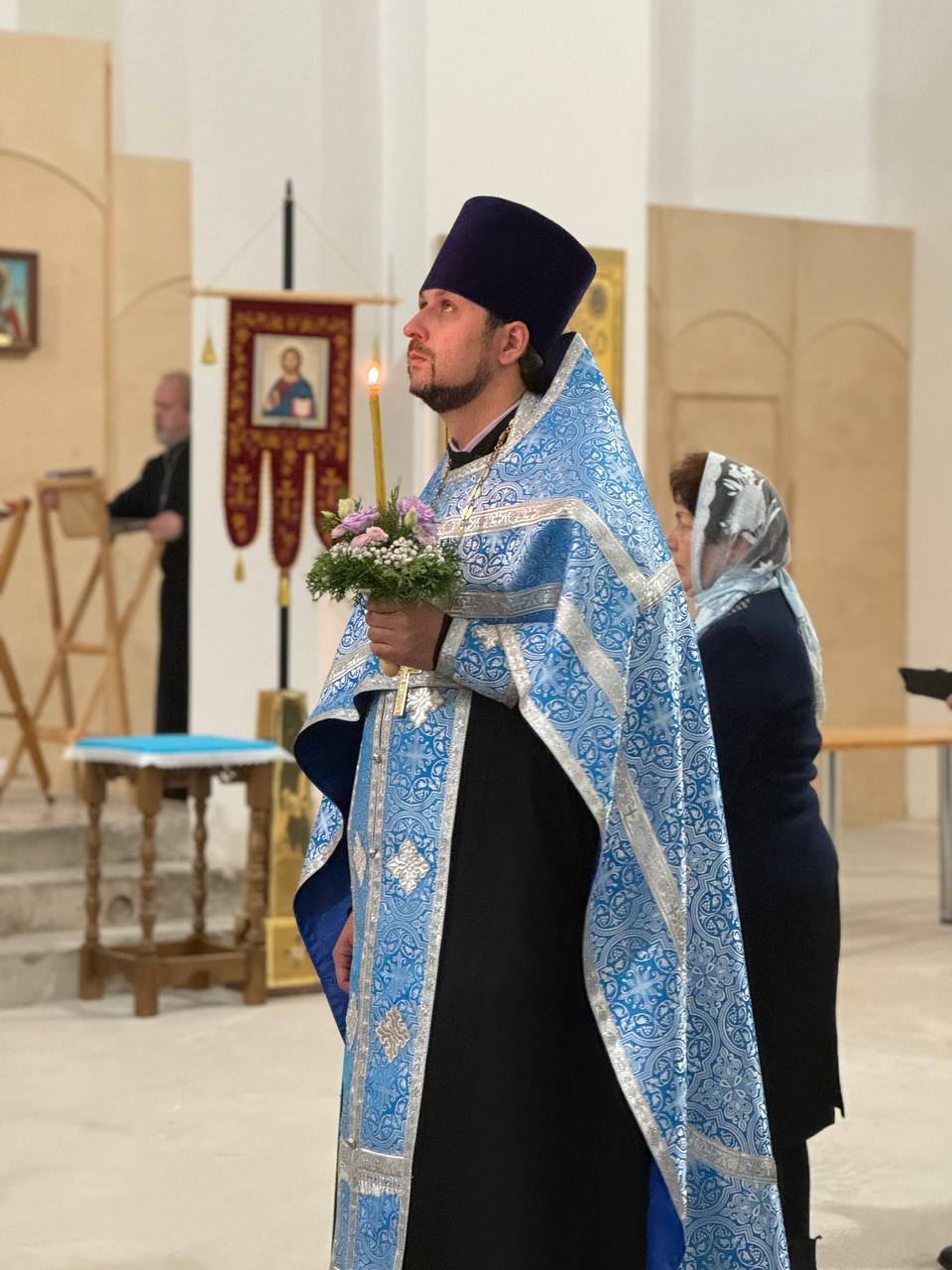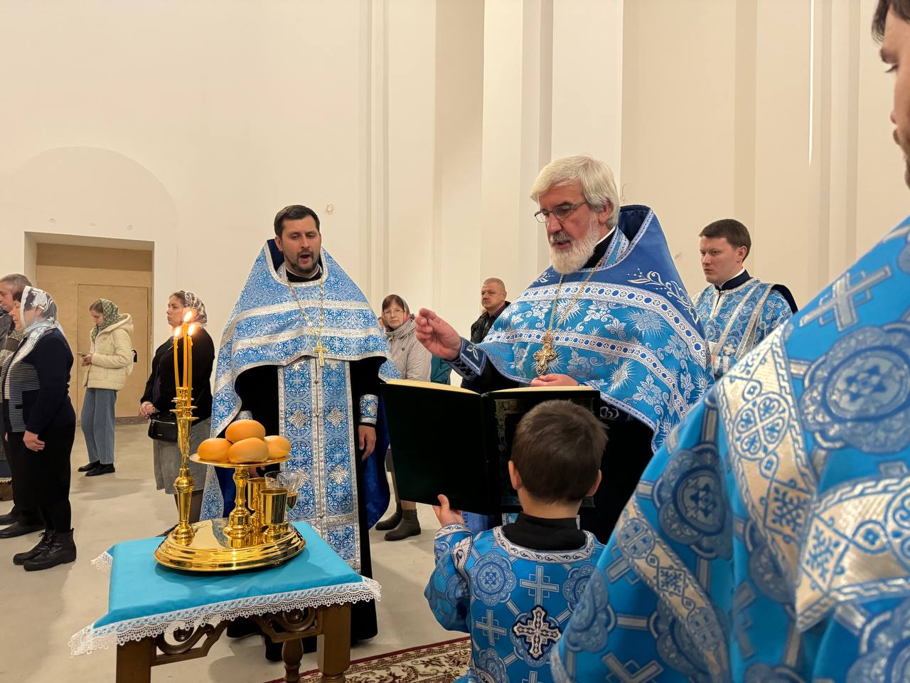Накануне праздника, вечером 13 октября, Всенощное бдение в строящемся храме Всемилостивого Спаса совершил настоятель храма протоирей Михаил Подолей. Его Высокопреподобию сослужили иерей Николай Терентьев, иерей Константин Подолей, диаконы Эмануил Кричфалуший и Владимир Аношин.