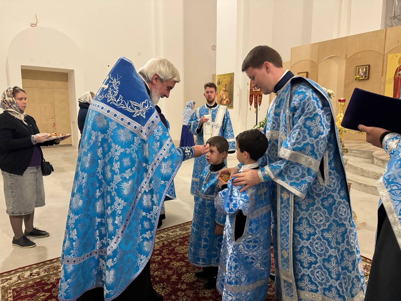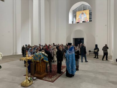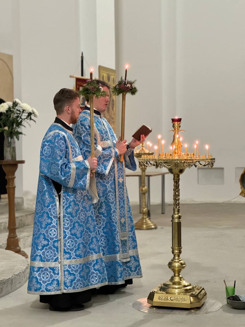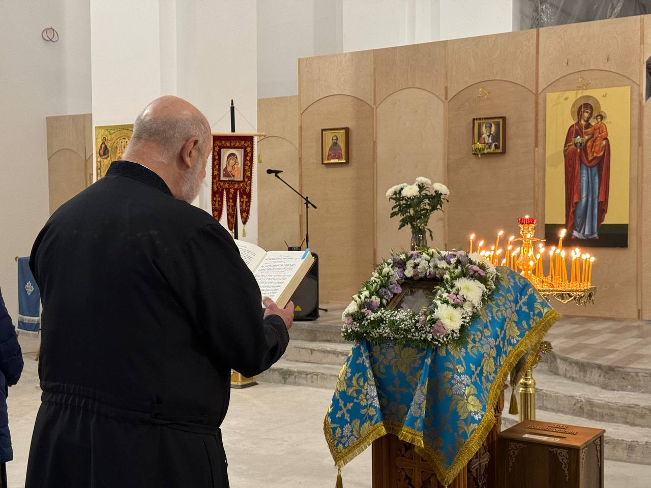 Накануне праздника, вечером 13 октября, Всенощное бдение в строящемся храме Всемилостивого Спаса совершил настоятель храма протоирей Михаил Подолей. Его Высокопреподобию сослужили иерей Николай Терентьев, иерей Константин Подолей, диаконы Эмануил Кричфалуший и Владимир Аношин.