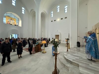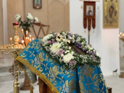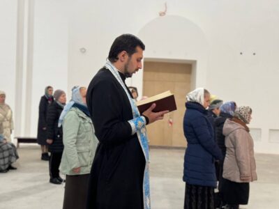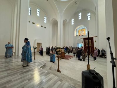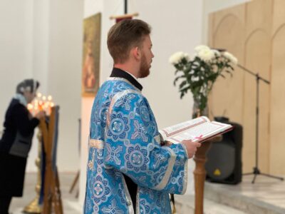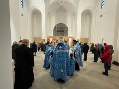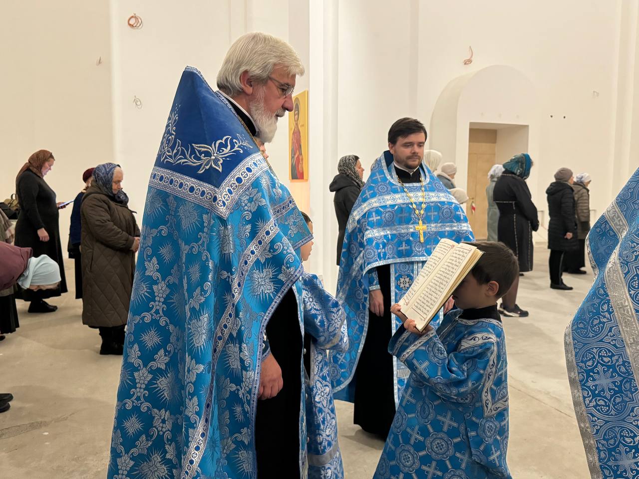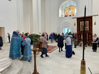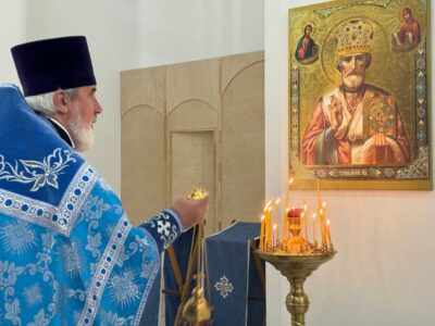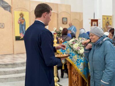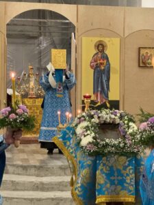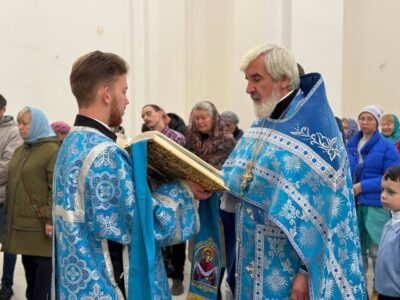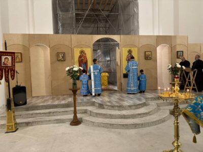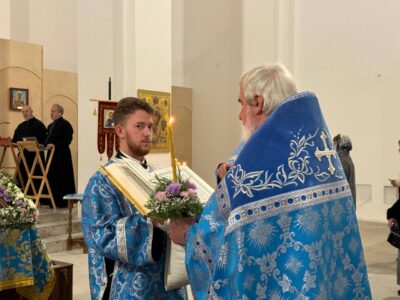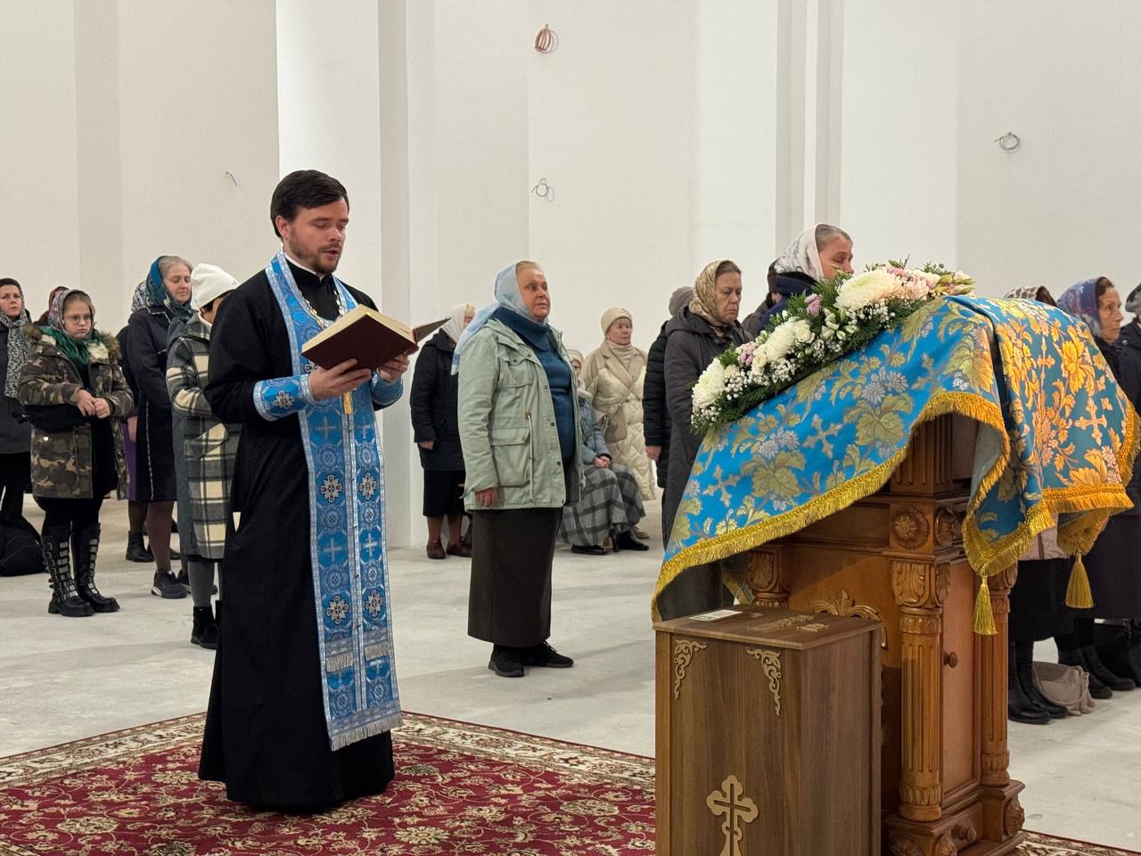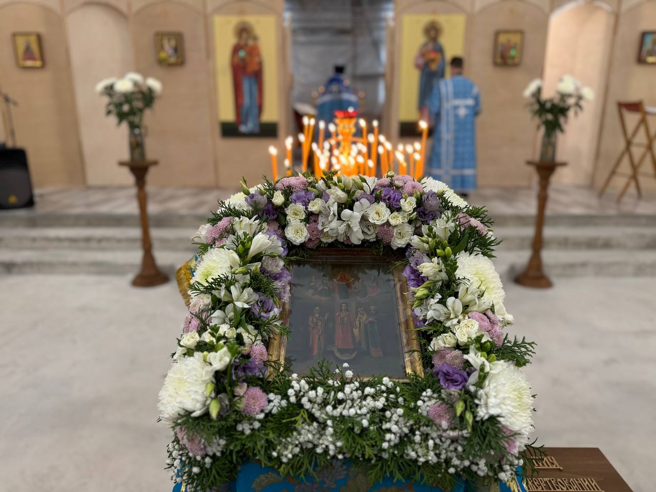 Накануне праздника, вечером 13 октября, Всенощное бдение в строящемся храме Всемилостивого Спаса совершил настоятель храма протоирей Михаил Подолей. Его Высокопреподобию сослужили иерей Николай Терентьев, иерей Константин Подолей, диаконы Эмануил Кричфалуший и Владимир Аношин.