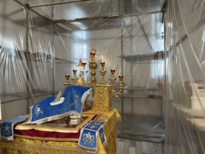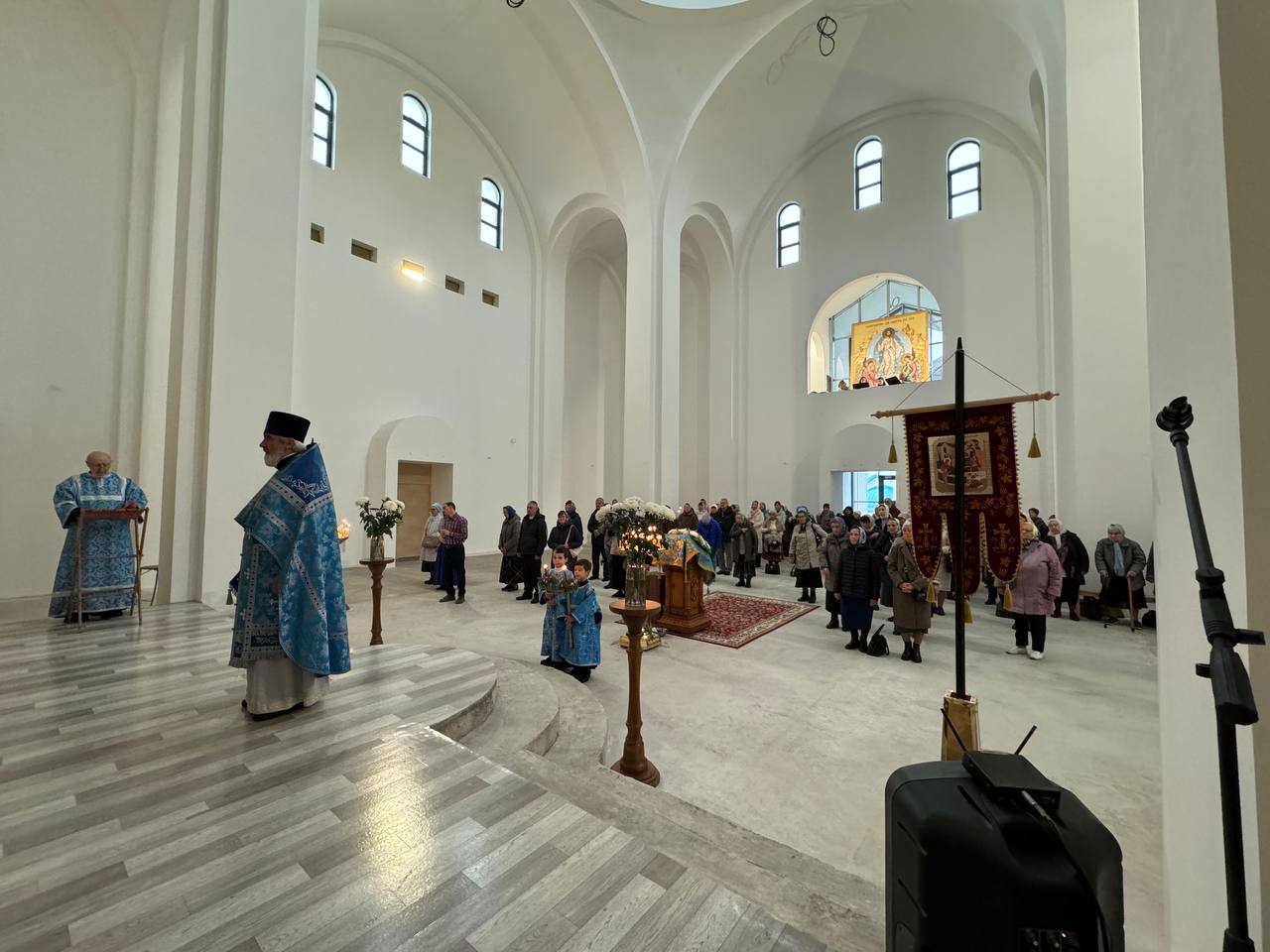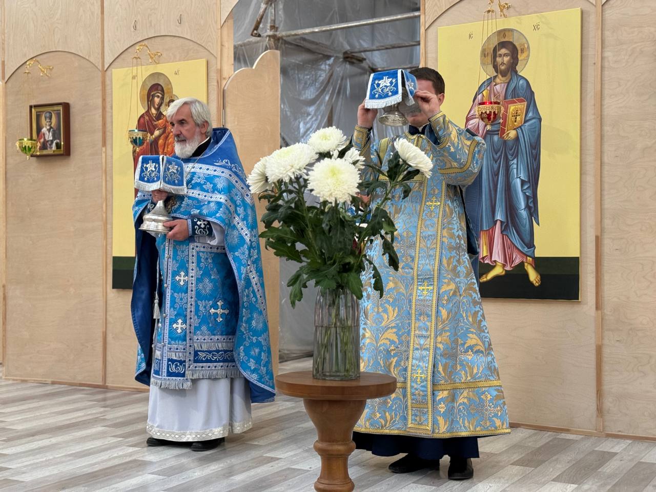 14 октября 2024 года, в праздник Покрова Пресвятой Богородицы, Божественную литургию в строящемся храме Всемилостивого Спаса совершил настоятель храма протоиерей Михаил Подолей в сослужении клира.