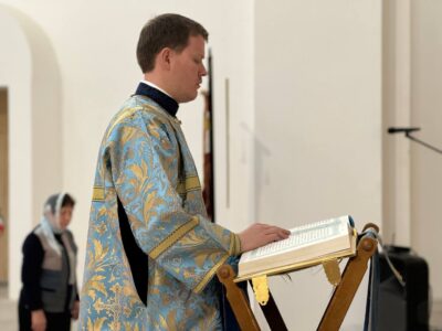 Раннюю Литургию в храме святого праведного Иоанна Кронштадтского на Кронштадтской площади совершил иерей Константин Подолей.