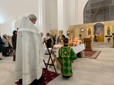 Накануне вечером, 1 ноября, Парастас в строящемся храме Всемилостивого Спаса совершил также настоятель храма протоиерей Михаил Подолей в сослужении клира.