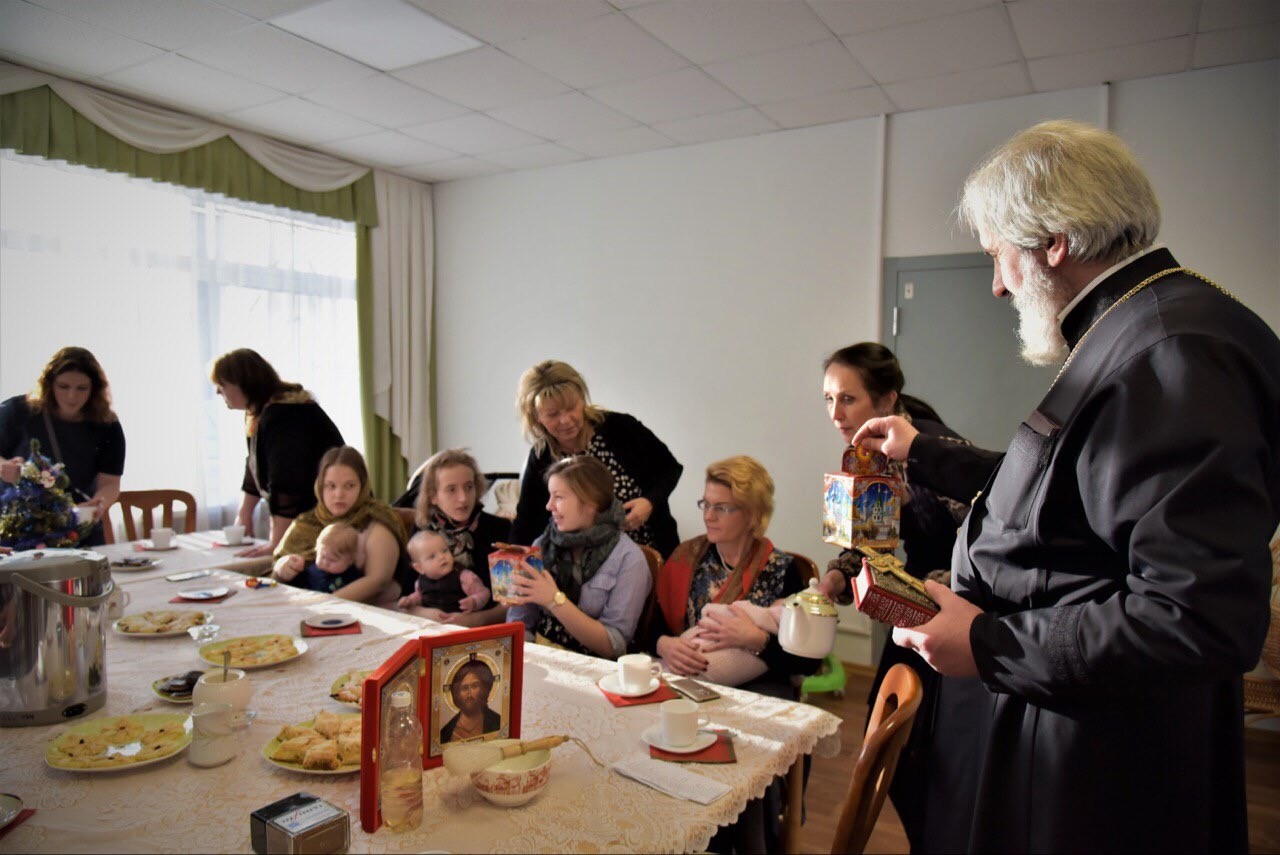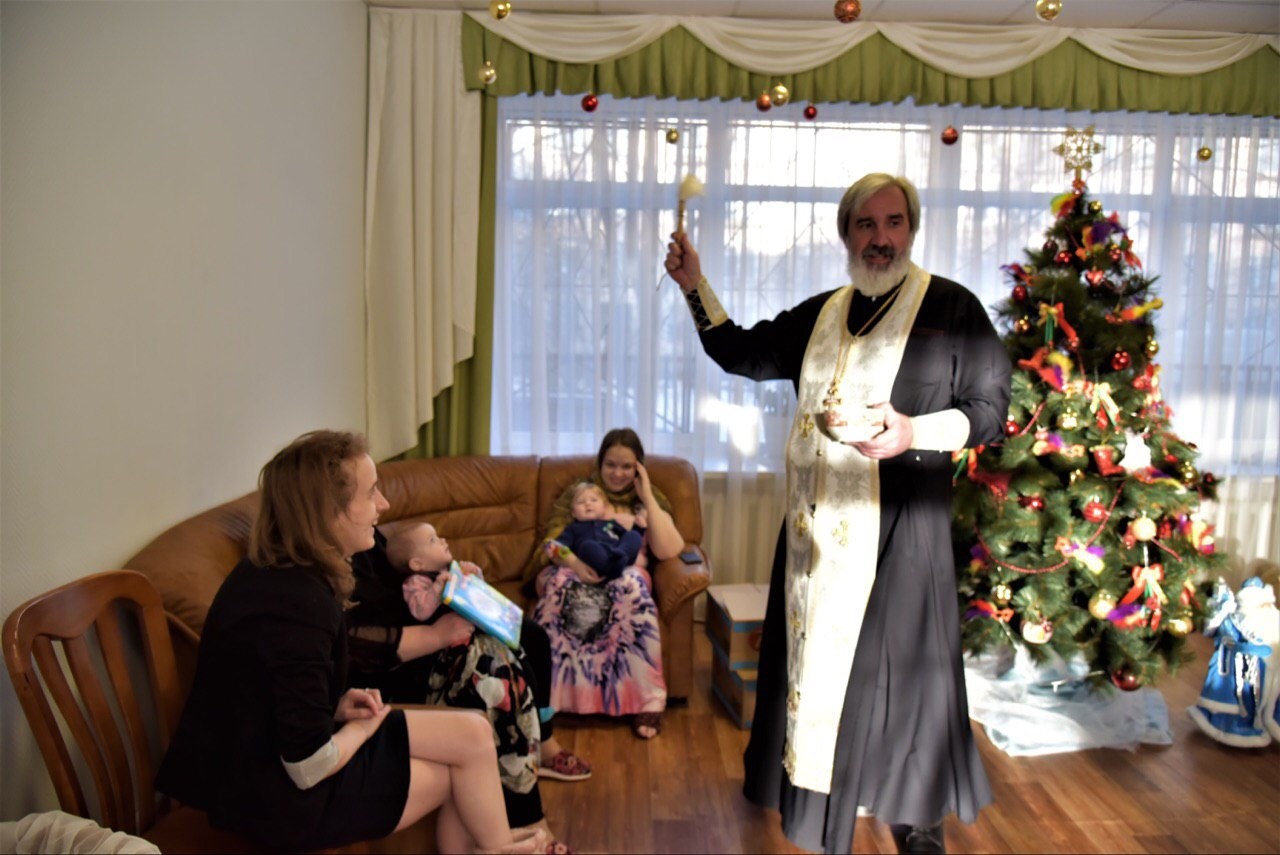 Настоятель храма святого праведного Иоанна Кронштадтского на Кронштадтской площади прот. Михаил Подолей с помощниками и хором посетил «Кризисный центр помощи женщинам». Прот. Михаил поздравил директора «Центра» Марину Анатольевну Гречишкину, сотрудников и проживающих в нем женщин с праздником Рождества Христова. В актовом зале Центра был совершен молебен. Затем было освящено здание Цента после ремонта.