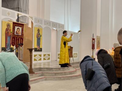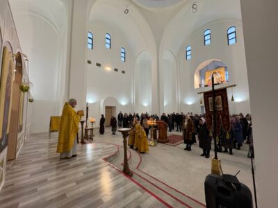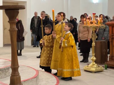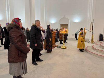 15 декабря 2024 года, в Неделю 25-ю по Пятидесятнице, Божественную литургию в строящемся храме Всемилостивого Спаса совершил настоятель храма протоиерей Михаил Подолей в сослужении клира.
