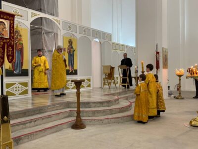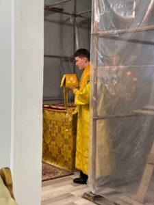 22 декабря 2024 года, в Неделю 26-ю по Пятидесятнице, Божественную литургию в строящемся храме Всемилостивого Спаса совершил настоятель храма протоиерей Михаил Подолей в сослужении клира.