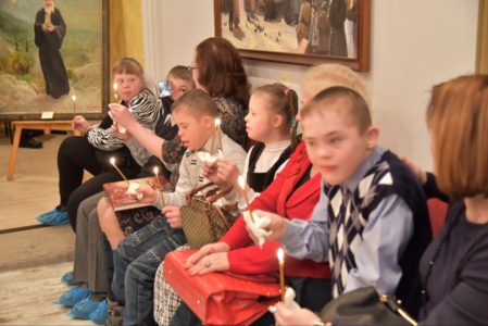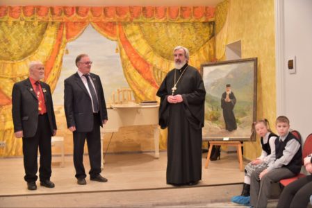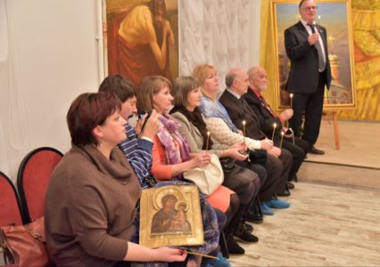 На церемонии открытия выставки духовной живописи присутствовали в том числе воспитанники детского Дома-интерната № 2 в Петергофе, который уже несколько лет окормляется храмом св. прав. Иоанна Кронштадтского на Кронштадтской пл. Известный российский ученый и меценат Виктор Георгиевич Карцев подарил Дому-интернату Тихвинскую икону Божией Матери конца XVIII – начала XIX века. «Я с такой радостью и легкостью отдаю ее в детский приют, с большой надеждой, что она обережет этот приют, – сказал он, передавая икону. – Она даст здоровье и благодать этому заведению».