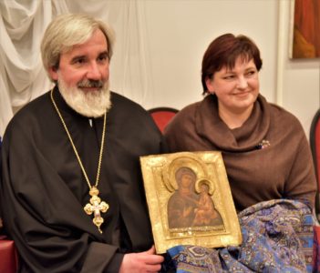 Прот. Михаил Подолей поблагодарил Виктора Георгиевича за такой дар, высказав надежду, что эта икона станет защитницей Дома-интерната, что образ Царицы Небесной будет помогать детям, руководству и персоналу интерната, поддерживать их.