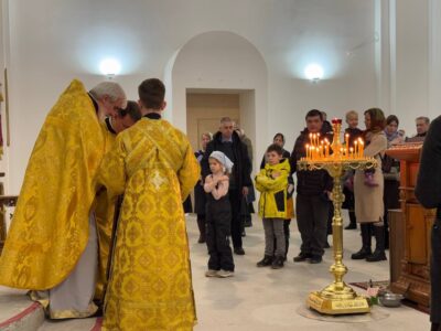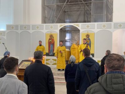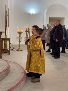 29 декабря 2024 года, в Неделю 27-ю по Пятидесятнице, святых праотец, Божественную литургию в строящемся храме Всемилостивого Спаса совершил настоятель храма протоиерей Михаил Подолей в сослужении клира.