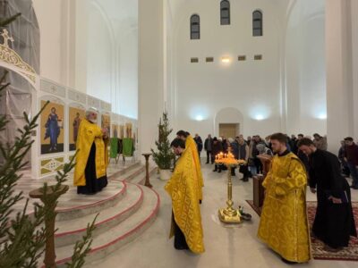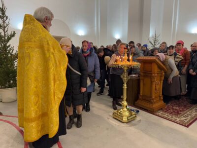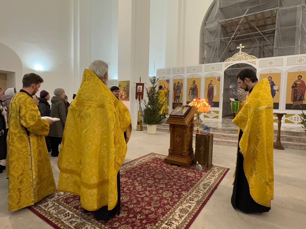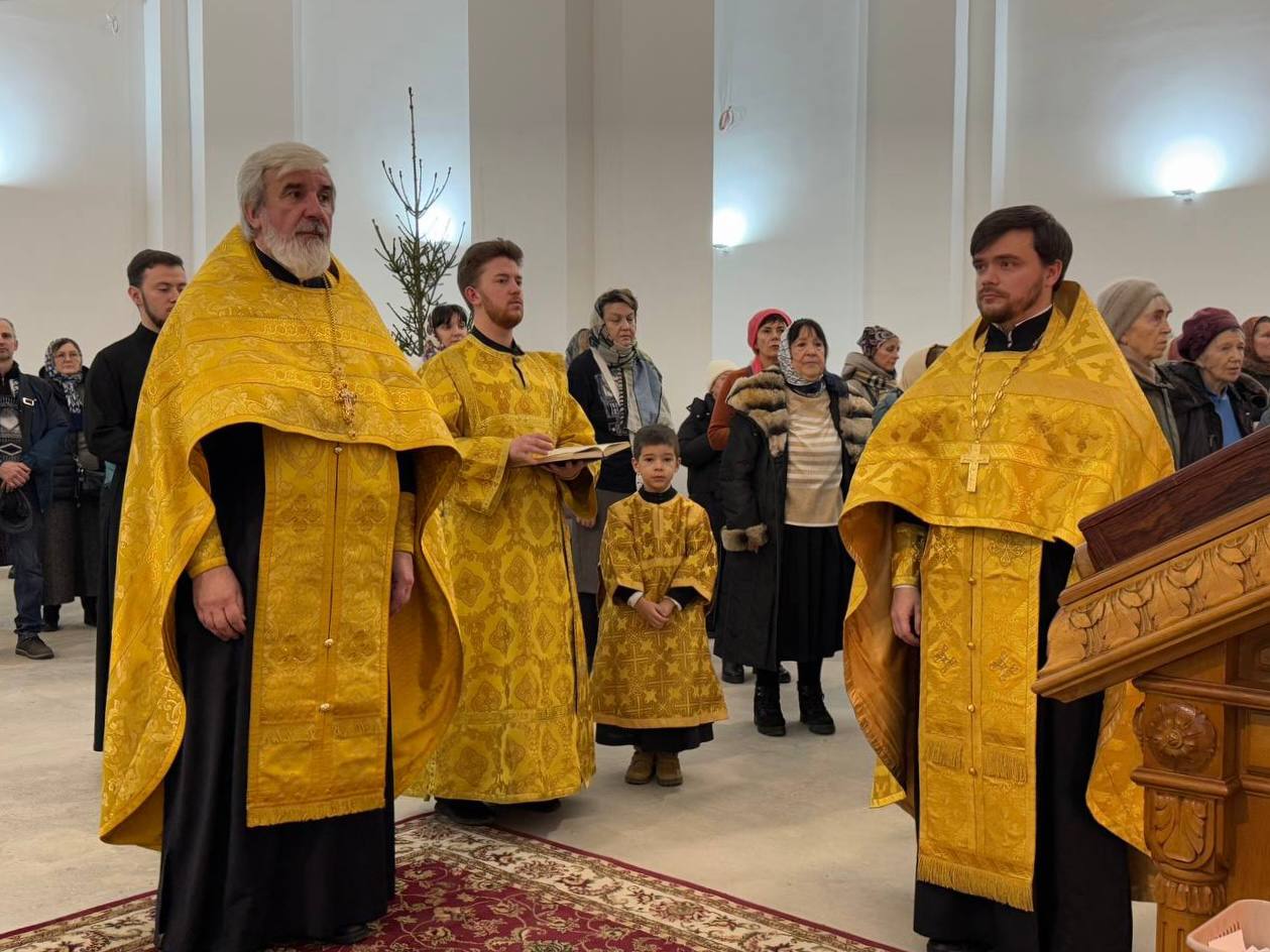 31 декабря 2024 года Новогодний молебен в строящемся храме Всемилостивого Спаса совершил настоятель храма протоиерей Михаил Подолей в сослужении клира.