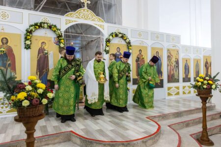 2 января 2025 года, в день памяти святого праведного Иоанна Кронштадтского, Божественную литургию в строящемся храме Всемилостивого Спаса совершил митрополит Санкт-Петербургский и Ладожский Варсонофий. Его Высокопреосвященству сослужили секретарь епархиального управления протоиерей Сергий Куксевич, благочинный Красносельского округа, настоятель храма протоиерей Михаил Подолей с клиром, иерей Павел Ермошкин и другие священнослужители (https://mitropolia.spb.ru/news/mitropolit/?id=255170).