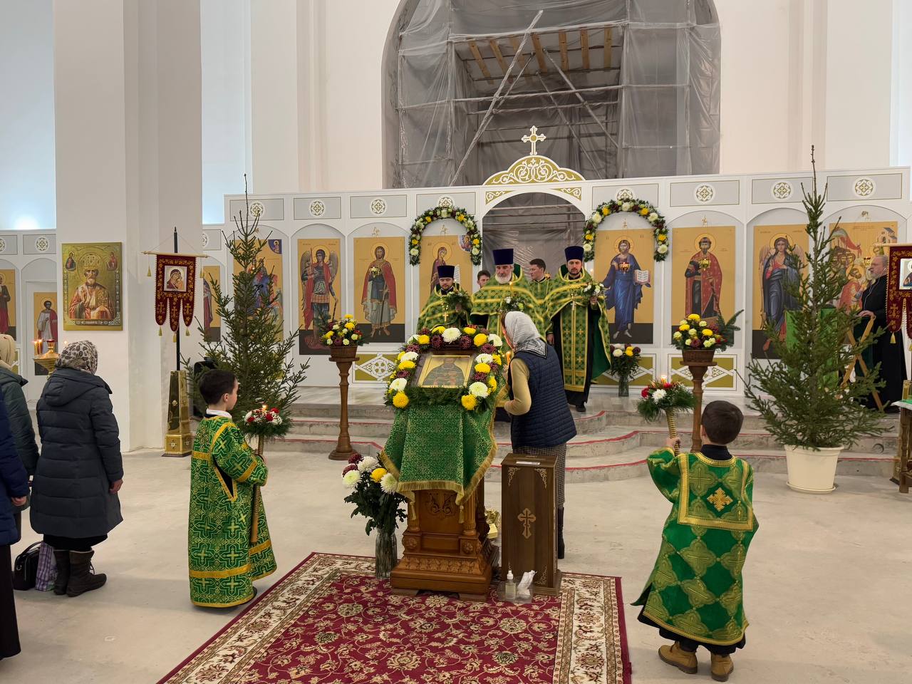 Накануне праздника, вечером 1 января 2025 года Всенощное бдение совершил настоятель храма протоиерей Михаил Подолей. Его Высокопреподобию сослужили иерей Николай Терентьев, иерей Константин Подолей, диаконы Эмануил Кричфалуший и Владимир Аношин.