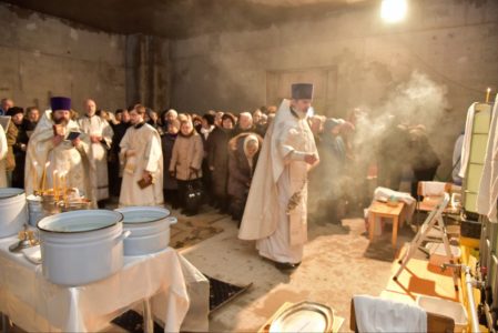 В храме св. прав. Иоанна Кронштадтского на Кронштадтской пл. 18 января была совершена служба Навечерия Богоявления, состоящая из Царских часов, изобразительных и вечерни с литургией св. Василия Великого. По заамвонной молитве состоялось Великое освящение воды на первом этаже строящегося храма во имя Спаса Нерукотворного.