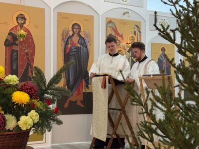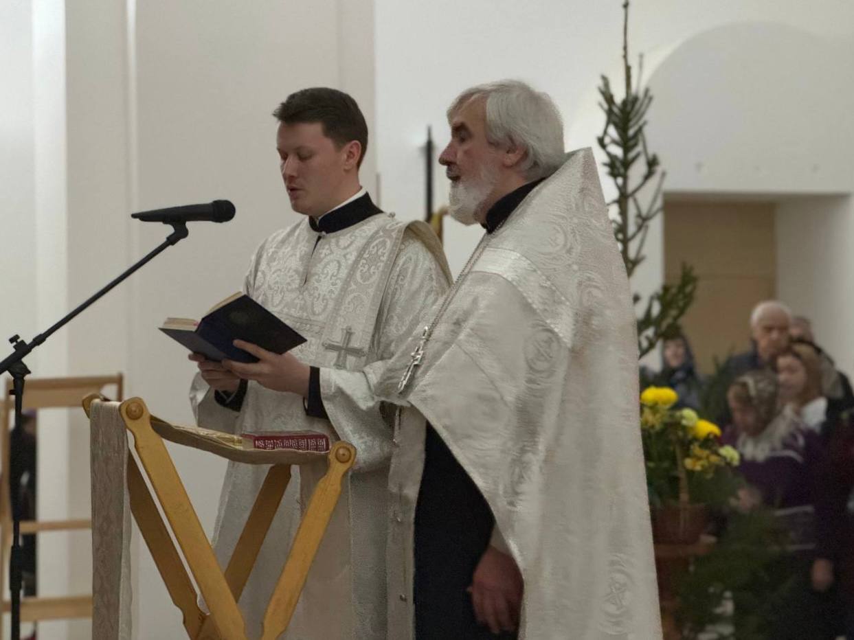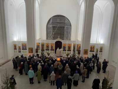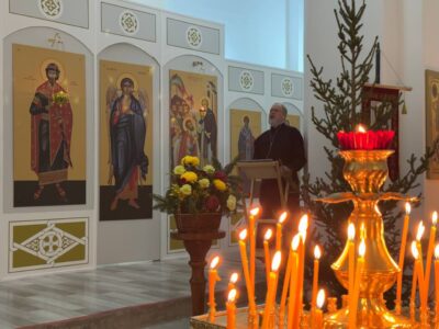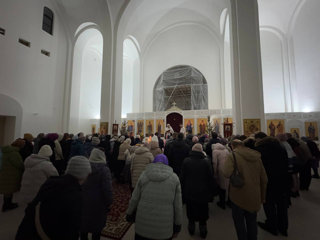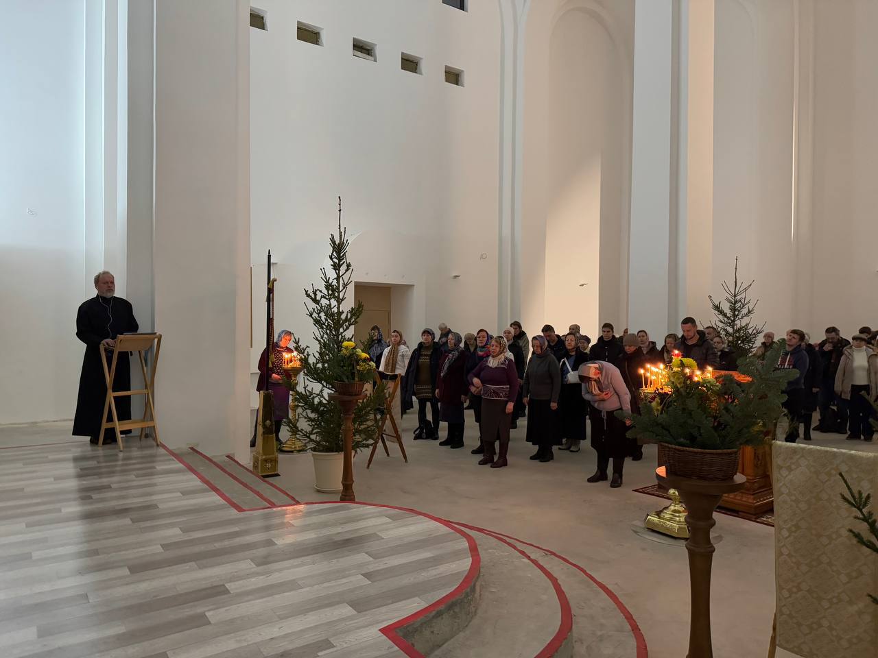 Вечером 5 января 2025 года, в преддверии праздника Рождества Христова, Уставную службу в строящемся храме Всемилостивого Спаса совершил настоятель храма протоиерей Михаил Подолей в сослужении клира.