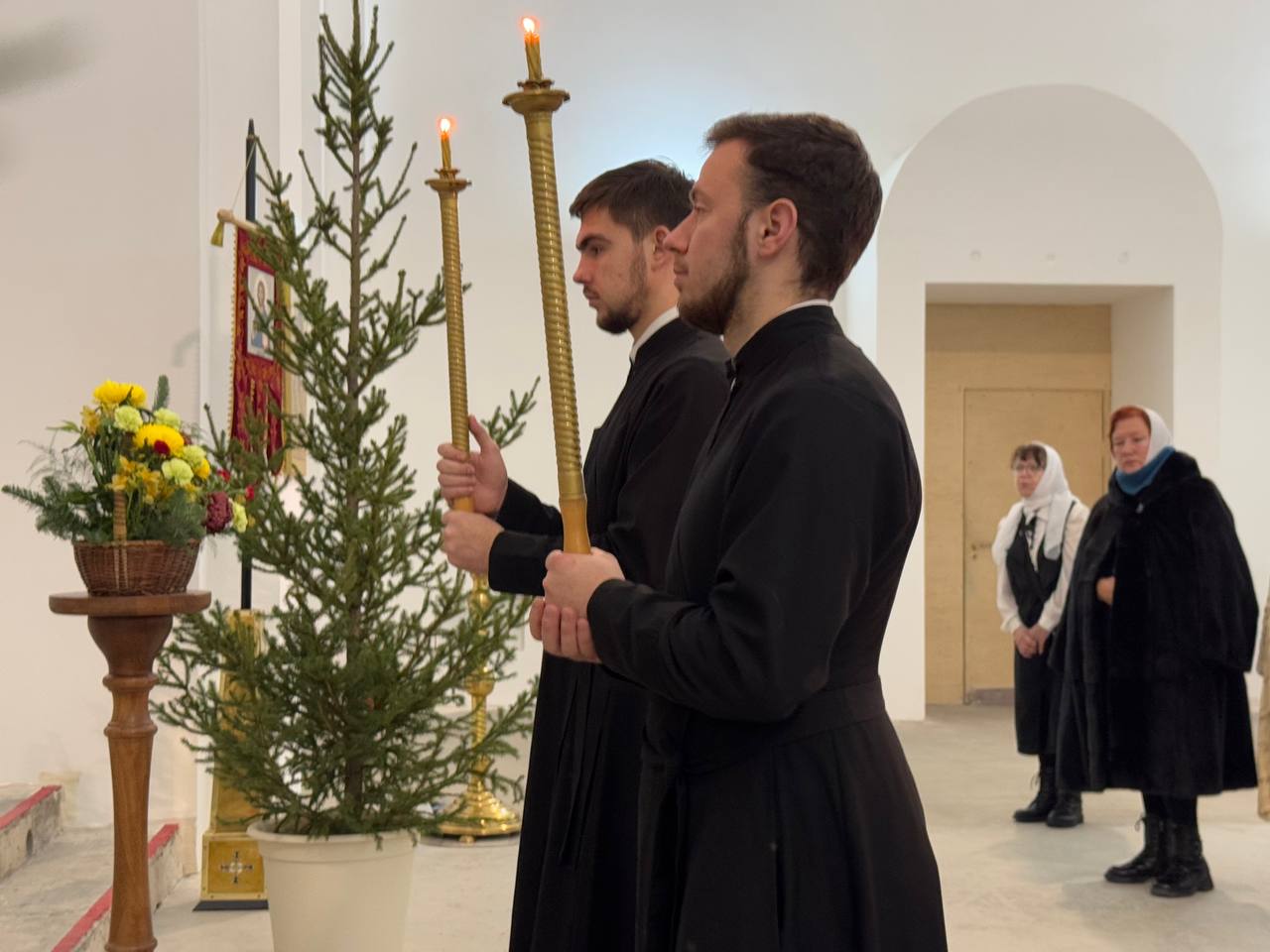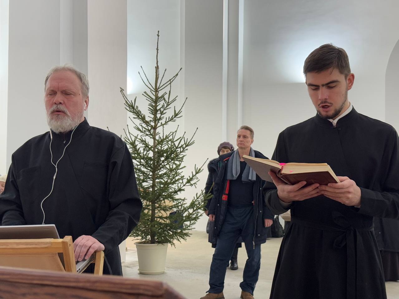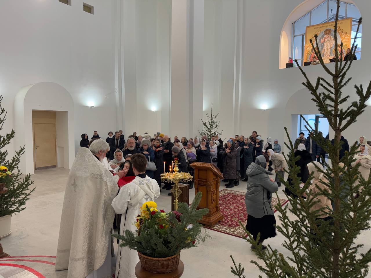 6 января 2025 года, в на́вечерие Рождества Христова, Рождественский сочельник, Царские часы, Изобразительны, Великую вечерню и Божественную литургию в строящемся храме Всемилостивого Спаса совершил настоятель храма протоиерей Михаил Подолей в сослужении клира.