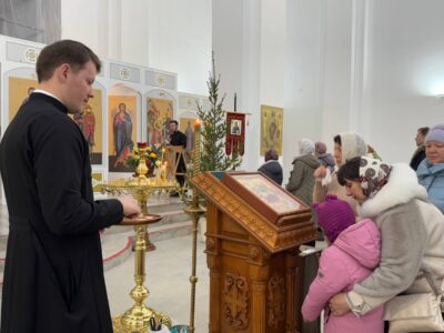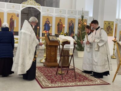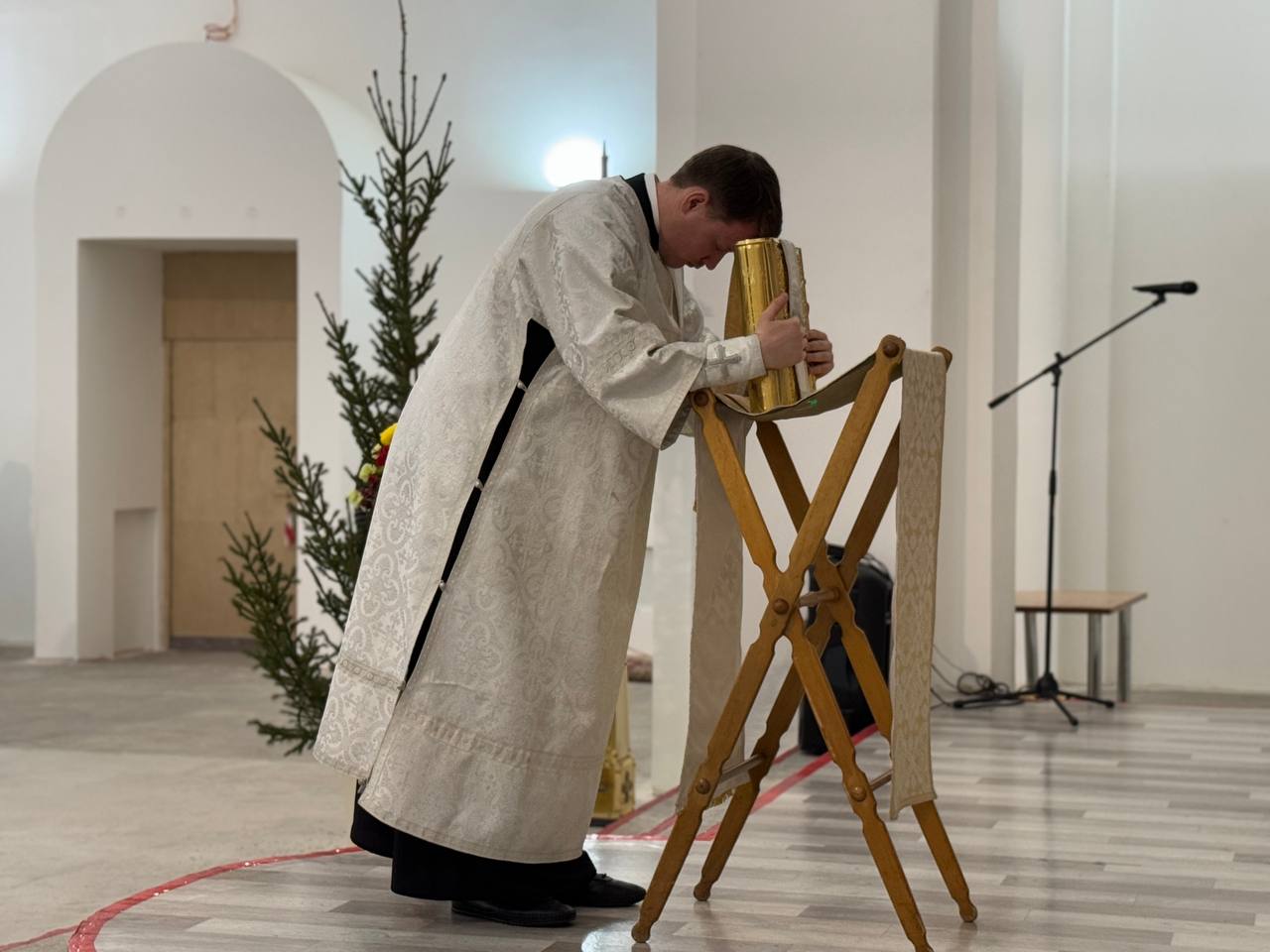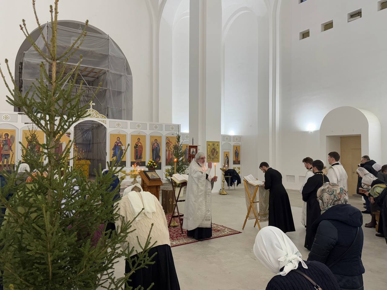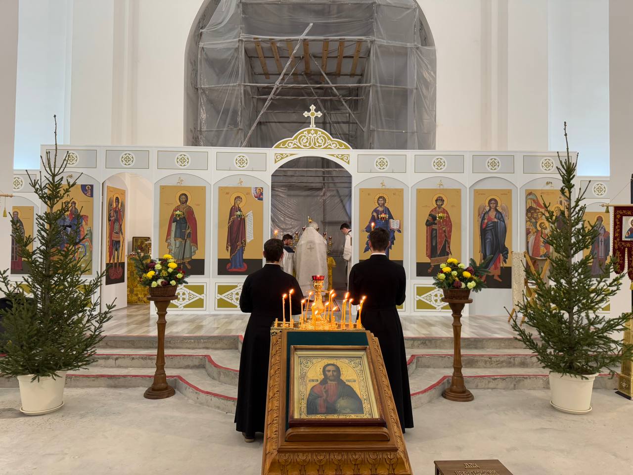 6 января 2025 года, в на́вечерие Рождества Христова, Рождественский сочельник, Царские часы, Изобразительны, Великую вечерню и Божественную литургию в строящемся храме Всемилостивого Спаса совершил настоятель храма протоиерей Михаил Подолей в сослужении клира.