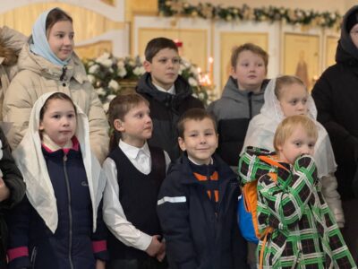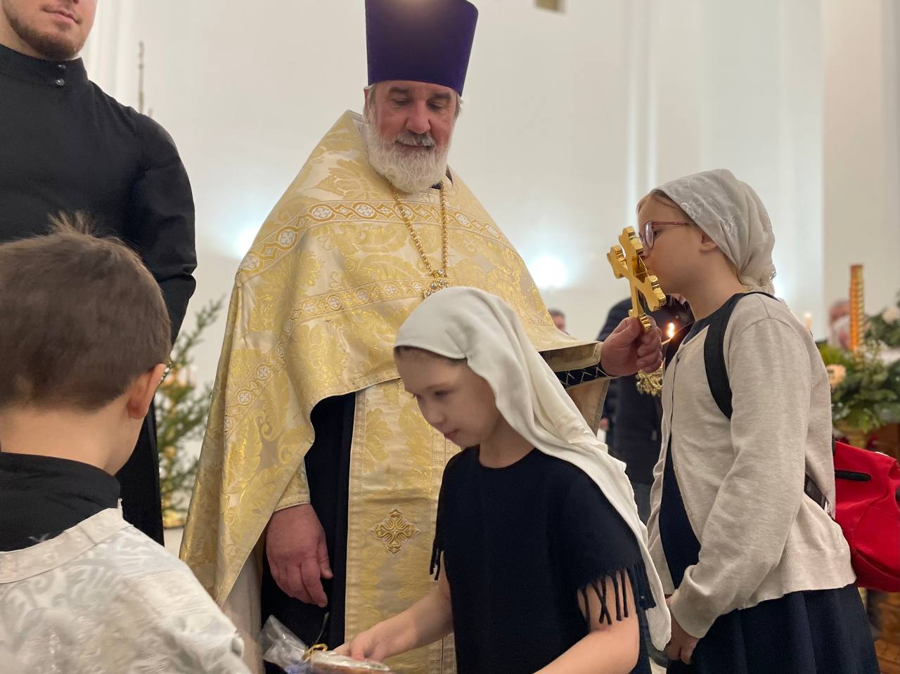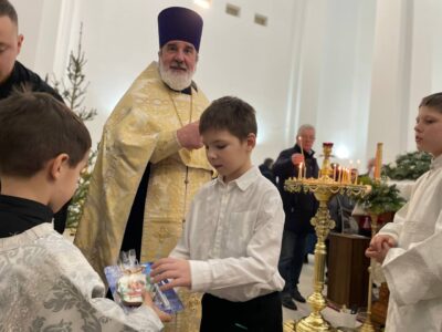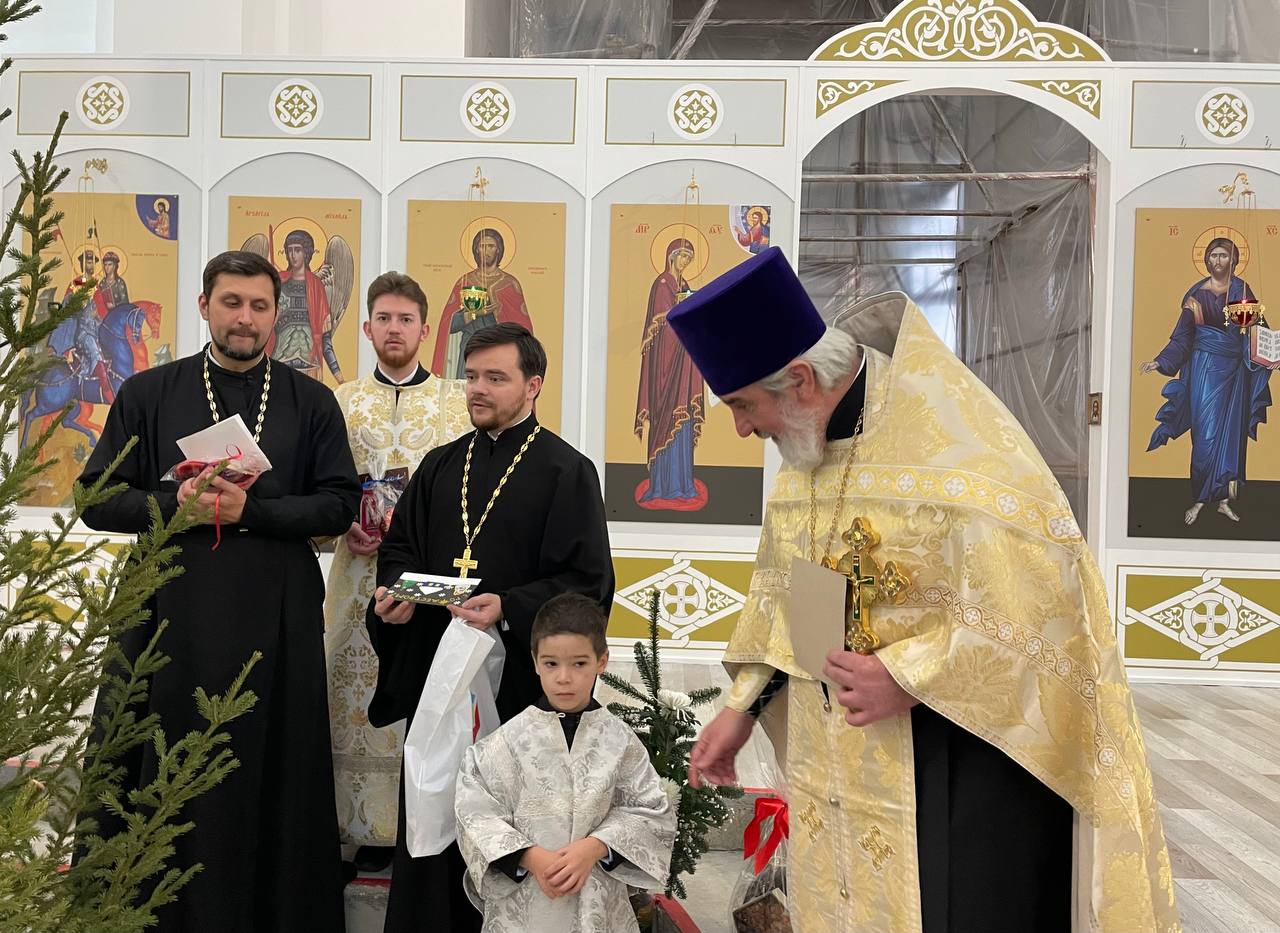 После богослужения настоятель поздравил священнослужителей, прихожан и воспитанников воскресной школы «София» с праздником и подарил всем детям подарки.