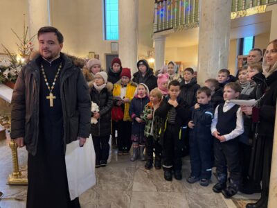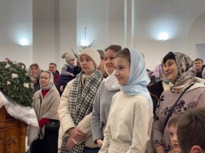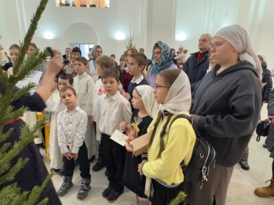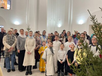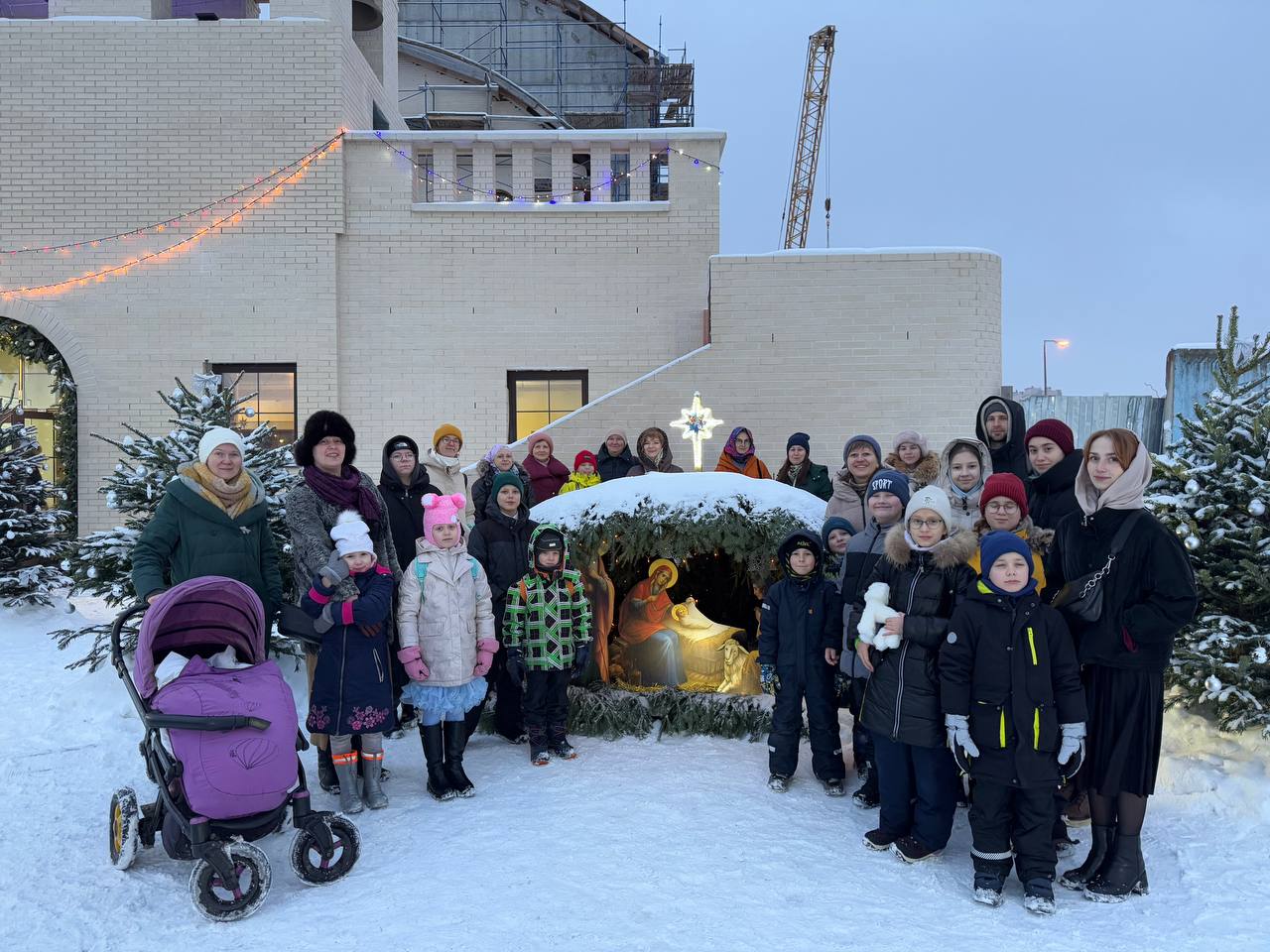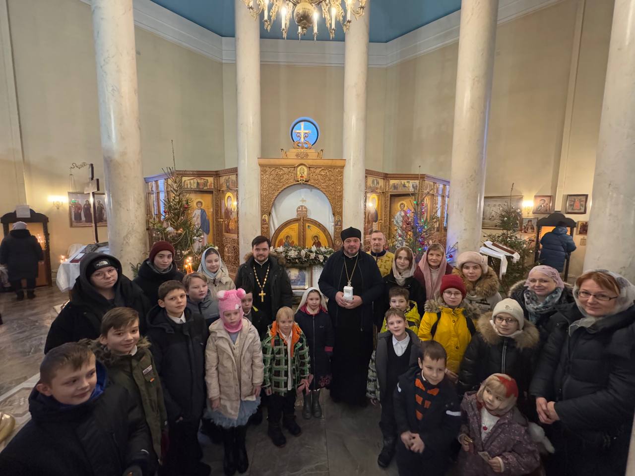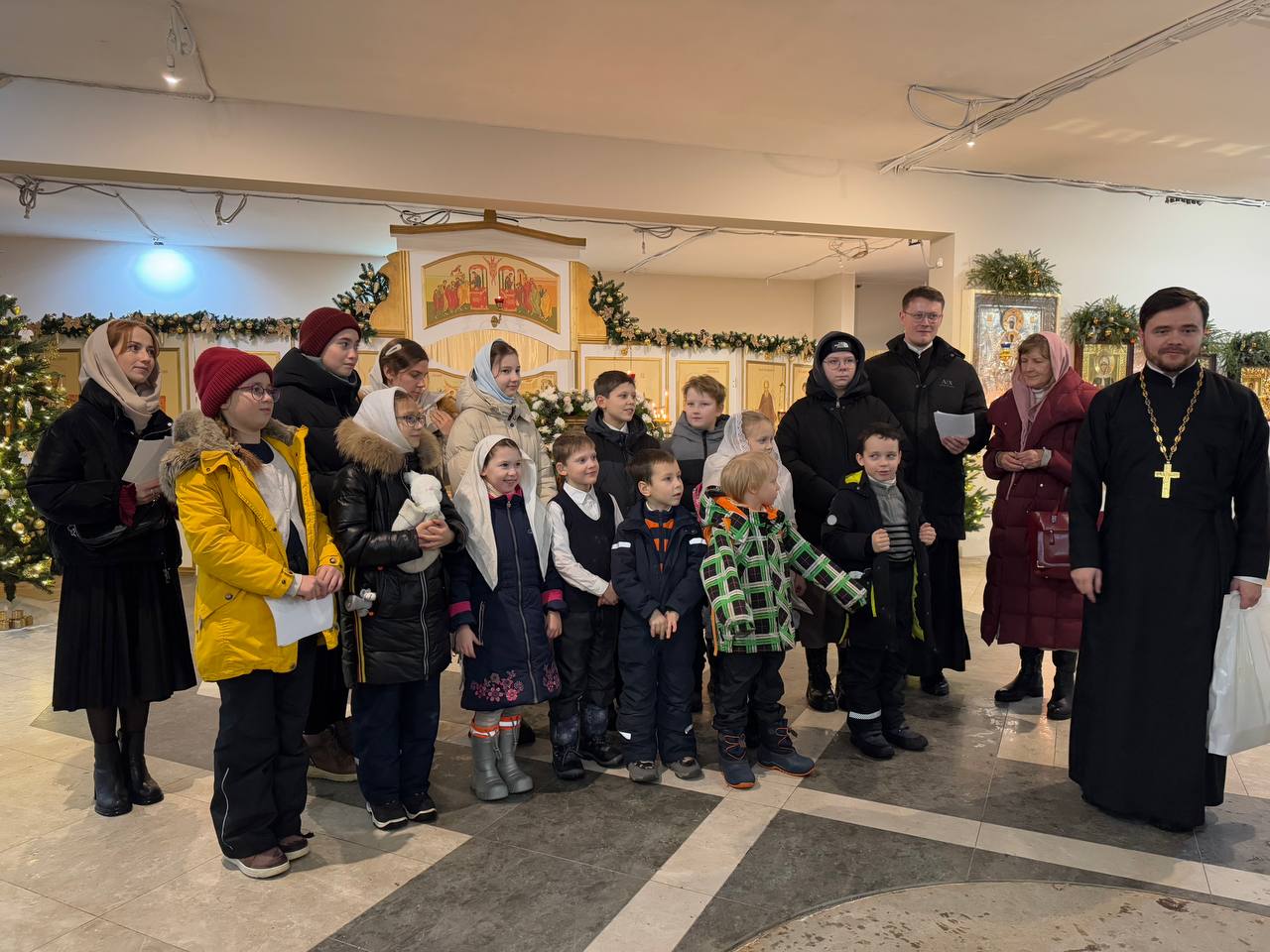 После богослужения воспитанники воскресной школы «София» с родителями и педагогами посетили храмы благочиния и спели колядки.