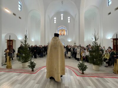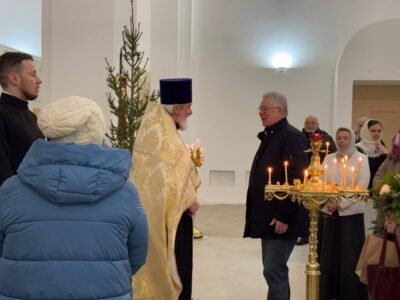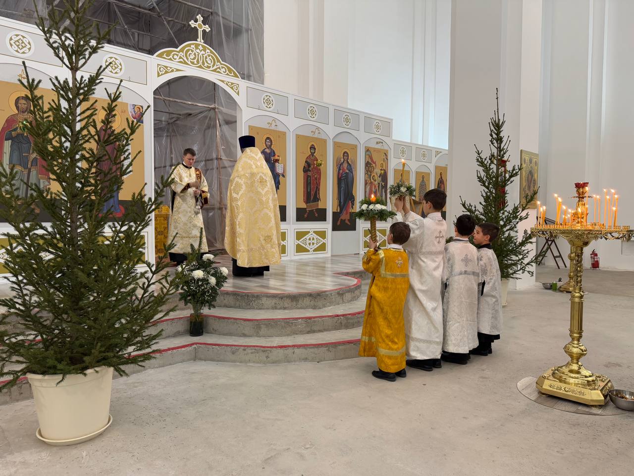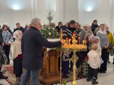 7 января 2025 года, в Рождество Господа Бога и Спаса нашего Иисуса Христа, Великую вечерню в строящемся храме Всемилостивого Спаса совершил настоятель храма протоиерей Михаил Подолей в сослужении клира.