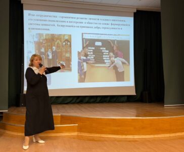 С приветственным словом к участникам семинара обратилась Сергеева Светлана Петровна — директор ГБОУ лицей №395 Красносельского района. Светлана Петровна рассказала о программе внеурочной деятельности «За Христом пойдешь, добрый путь найдешь», реализуемой в лицее.