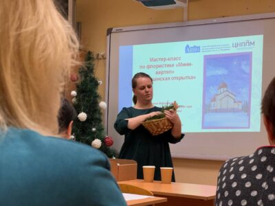 В практической части семинара участникам предложили поучаствовать в мастер-классах: «Каллиграфия как инструмент развития способностей ребенка», «Рождественский цикл праздников: «Флористика Мини-Вертеп» и «Объемная открытка к празднику Крещение Господне».