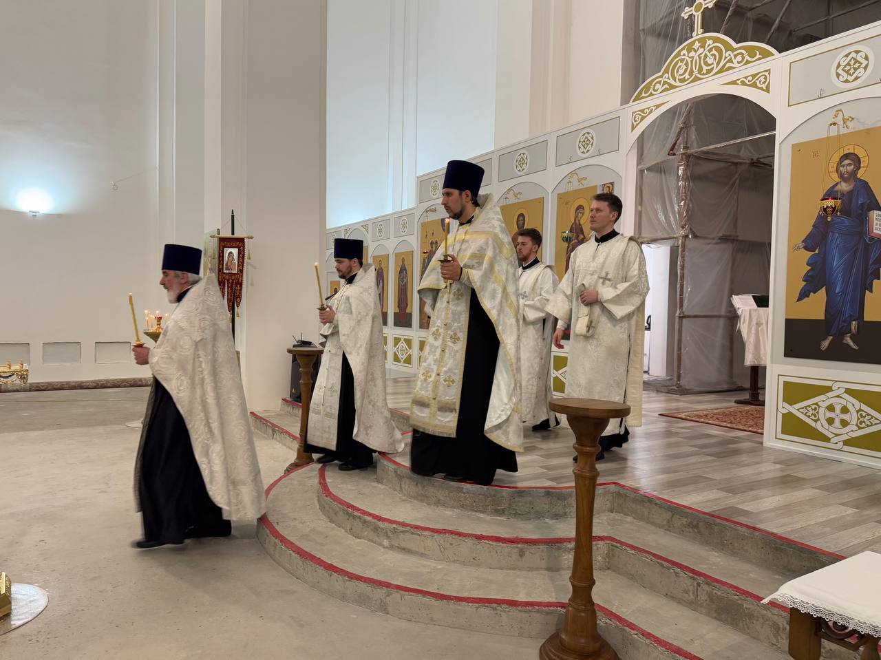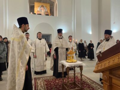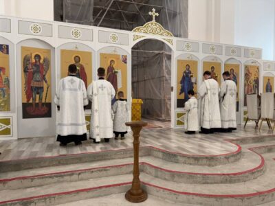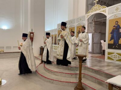 19 января 2025 года, в праздник Крещения Господня, Божественную литургию святителя Василия Великого в строящемся храме Всемилостивого Спаса совершил настоятель храма протоиерей Михаил Подолей. Его Высокопреподобию сослужил иерей Николай Терентьев. Диаконский чин составили: диаконы Эмануил Кричфалуший и Владимир Аношин.
