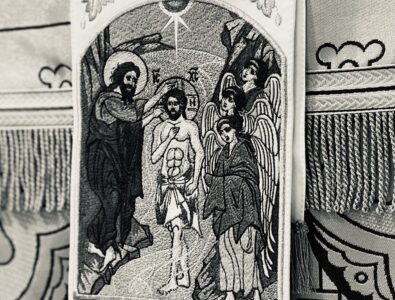 Во Иорда́не креща́ющуся Тебе́, Го́споди,/ Тро́йческое яви́ся поклоне́ние:/ Роди́телев бо глас свиде́тельствоваше Тебе́,/ Возлю́бленнаго Тя Сы́на имену́я,/ и Дух в ви́де голуби́не/ изве́ствоваше словесе́ утвержде́ние./ Явле́йся, Христе́ Бо́же,// и мир просвеще́й, сла́ва Тебе́.
