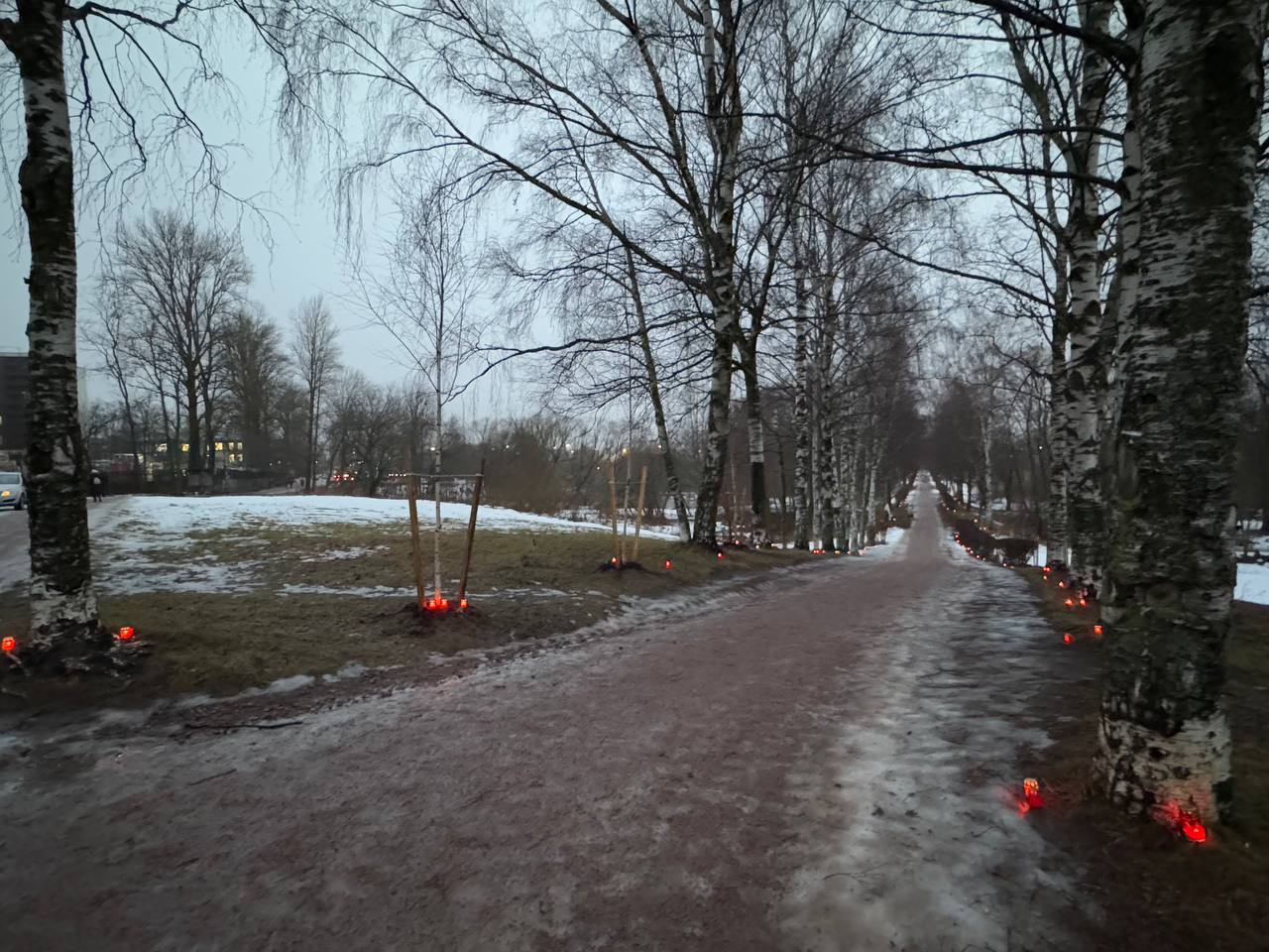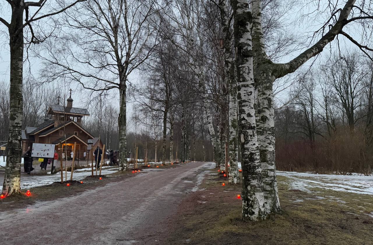 По доброй традиции на Алее Славы у подножия берёз были зажжены поминальные свечи. На братские могилы были возложены цветы и свечи.