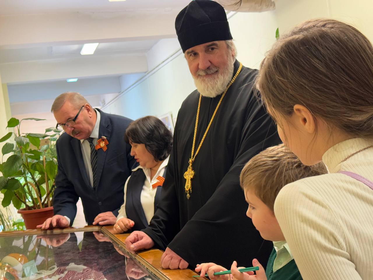 Перед началом мероприятия отцу Михаилу был показан лицей со множеством картинных галерей, работы детских и взрослых художников, а также выставка «С нами Бог!» голландской художницы Кати Вестерхофф.