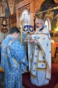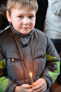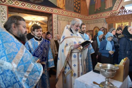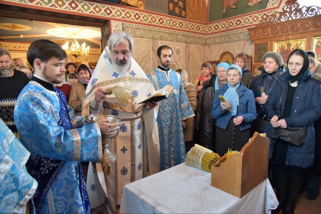 Перед началом литургии по древней традиции был совершен чин освящения церковных свечей. Сретенская свеча напоминает нам о зажженном в каждом из нас огоньке благодати Божией, который надо сохранить в себе. Сретенские свечи бережно хранятся и возжигаются во время домашней молитвы.