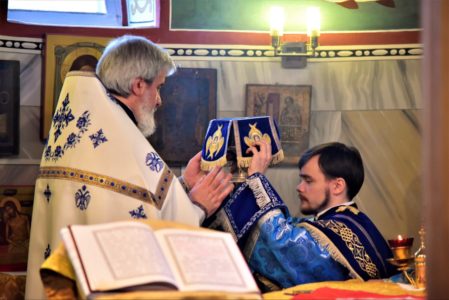 Радуйся, Благодатная Богородице Дево, / из Тебе бо возсия Солнце Правды – Христос, Бог наш, / просвещаяй сущия во тьме. / Веселися и ты, старче праведный, / приемый во объятия Свободителя душ наших, / дарующаго нам воскресение.