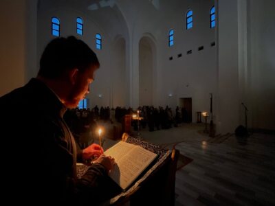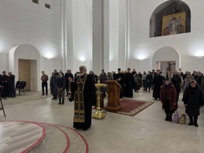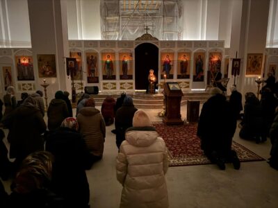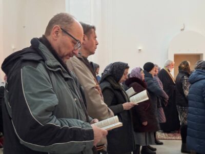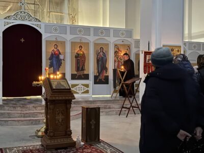 5 марта 2025 года, в среду 1-й седмицы Великого поста, в строящемся храме Всемилостивого Спаса великое повечерие с чтением Великого покаянного канона преподобного Андрея Критского совершил настоятель храма протоиерей Михаил Подолей.