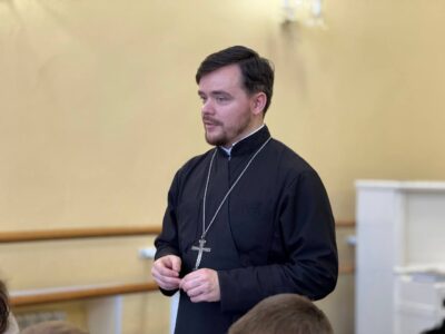 Директор иерей Константин Подолей провел урок для воспитанников воскресной школы, рассказав о начале книгопечатания на Руси и его значении для развития православной культуры, об исторических личностях, связанных с началом этого процесса.