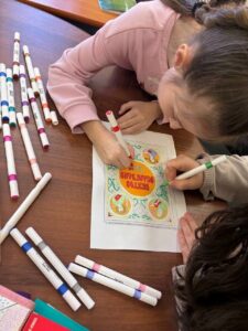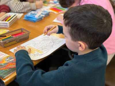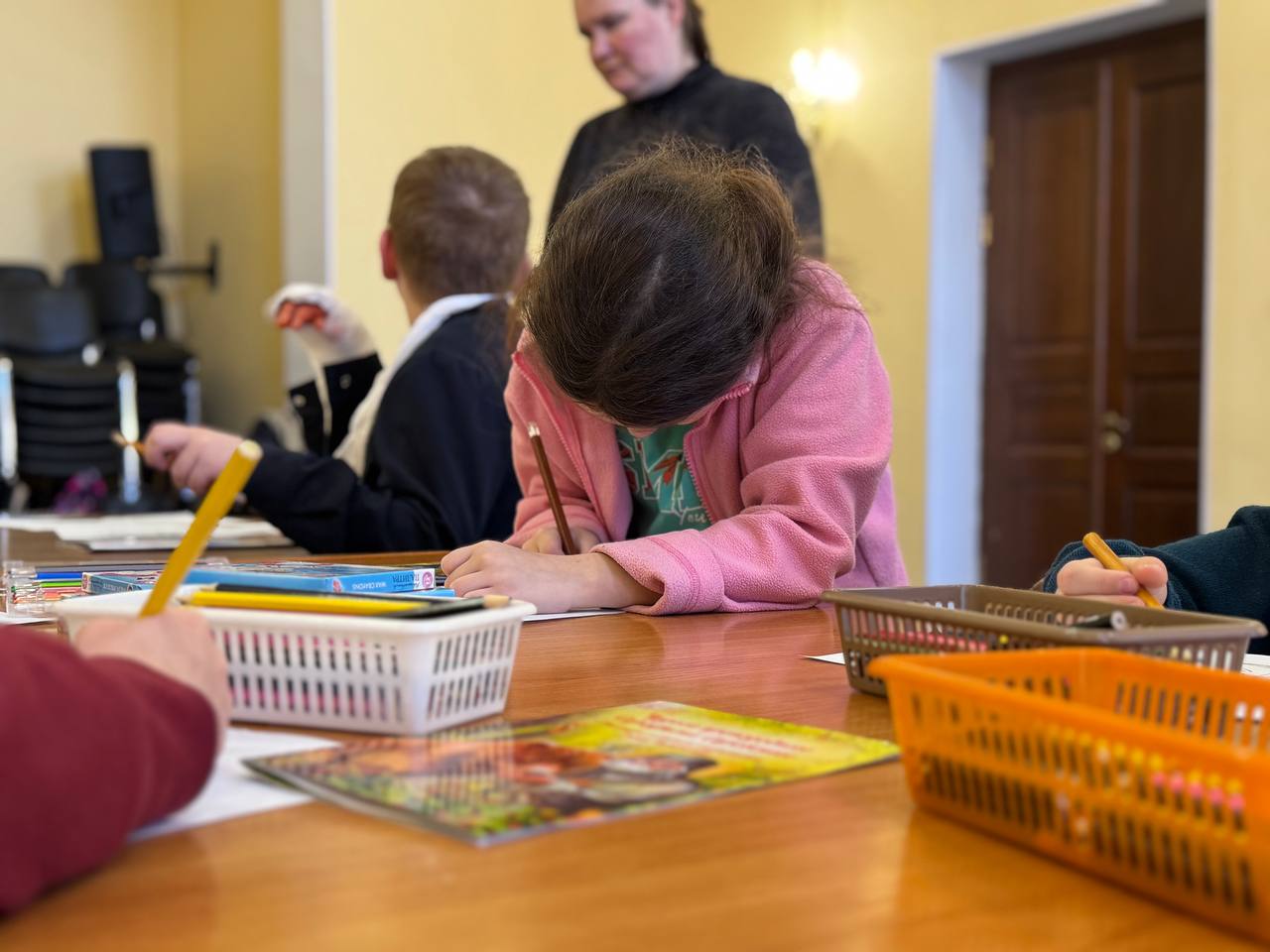 Затем на занятии Творческая мастерская дети самостоятельно раскрасили образцы православных книг и оформили плакат.