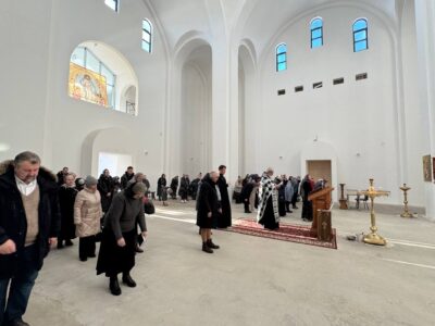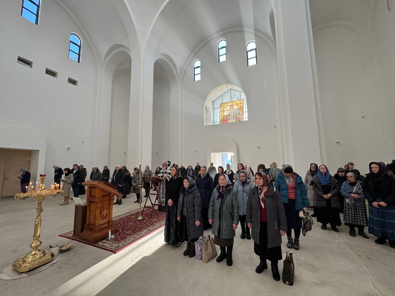 Вечером 16 марта 2025 года, в Неделю 2-ю Великого поста, в строящемся храме Всемилостивого Спаса настоятель храма протоиерей Михаил Подолей совершил вечернее богослужение с Чином Пассии.