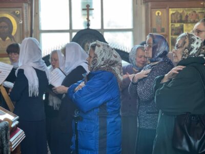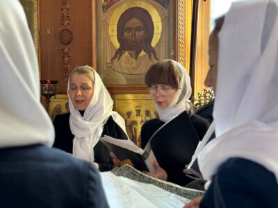 За богослужением пел любительский хор прихода храма святого праведного Иоанна Кронштадтского под управлением регента Марины Паниной.