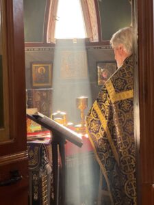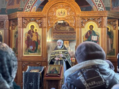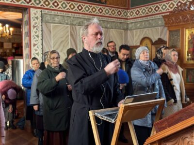Полиелейную утреню, накануне вечером, в храме святого праведного Иоанна Кронштадтского на Кронштадтской площади совершил также настоятель храма протоиерей Михаил Подолей в сослужении клира.