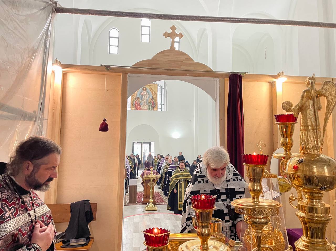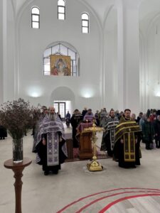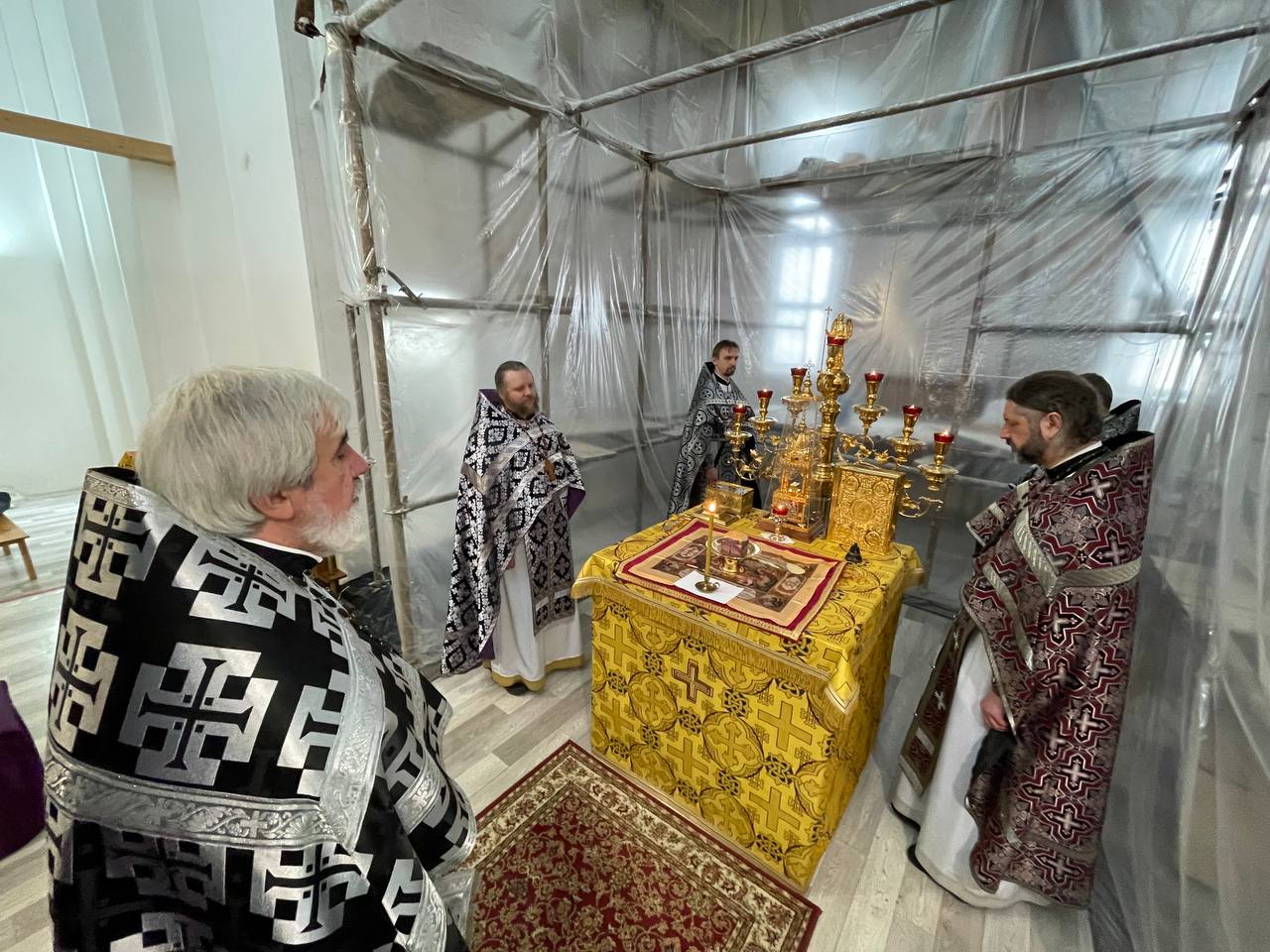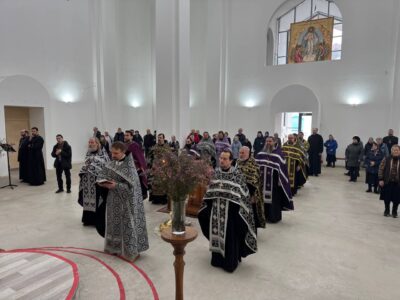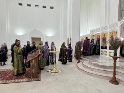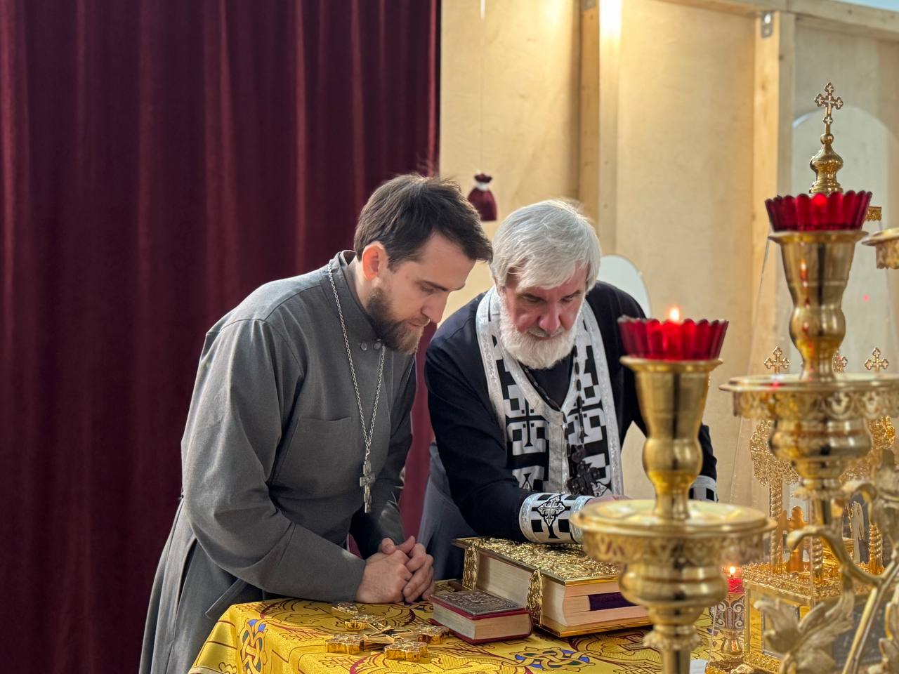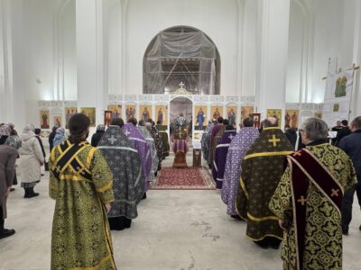 26 марта 2025 года, в среду 4-й седмицы Великого поста, Крестопоклонной, в строящемся храме Всемилостивого Спаса была совершена соборная молитва духовенства Красносельского благочиния.