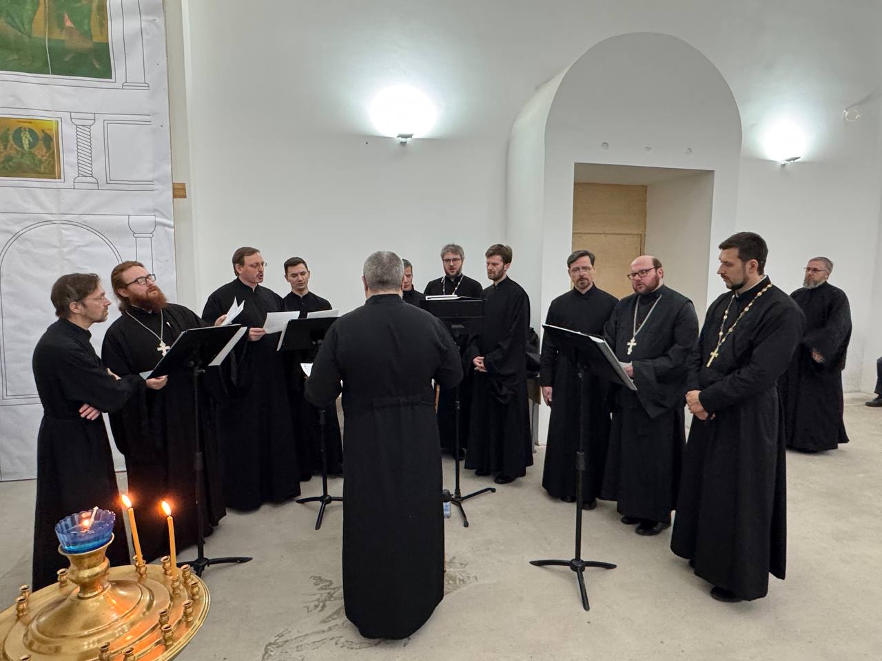 Песнопения богослужения исполнил хор духовенства благочиния под управлением регента Андрея Мельникова.